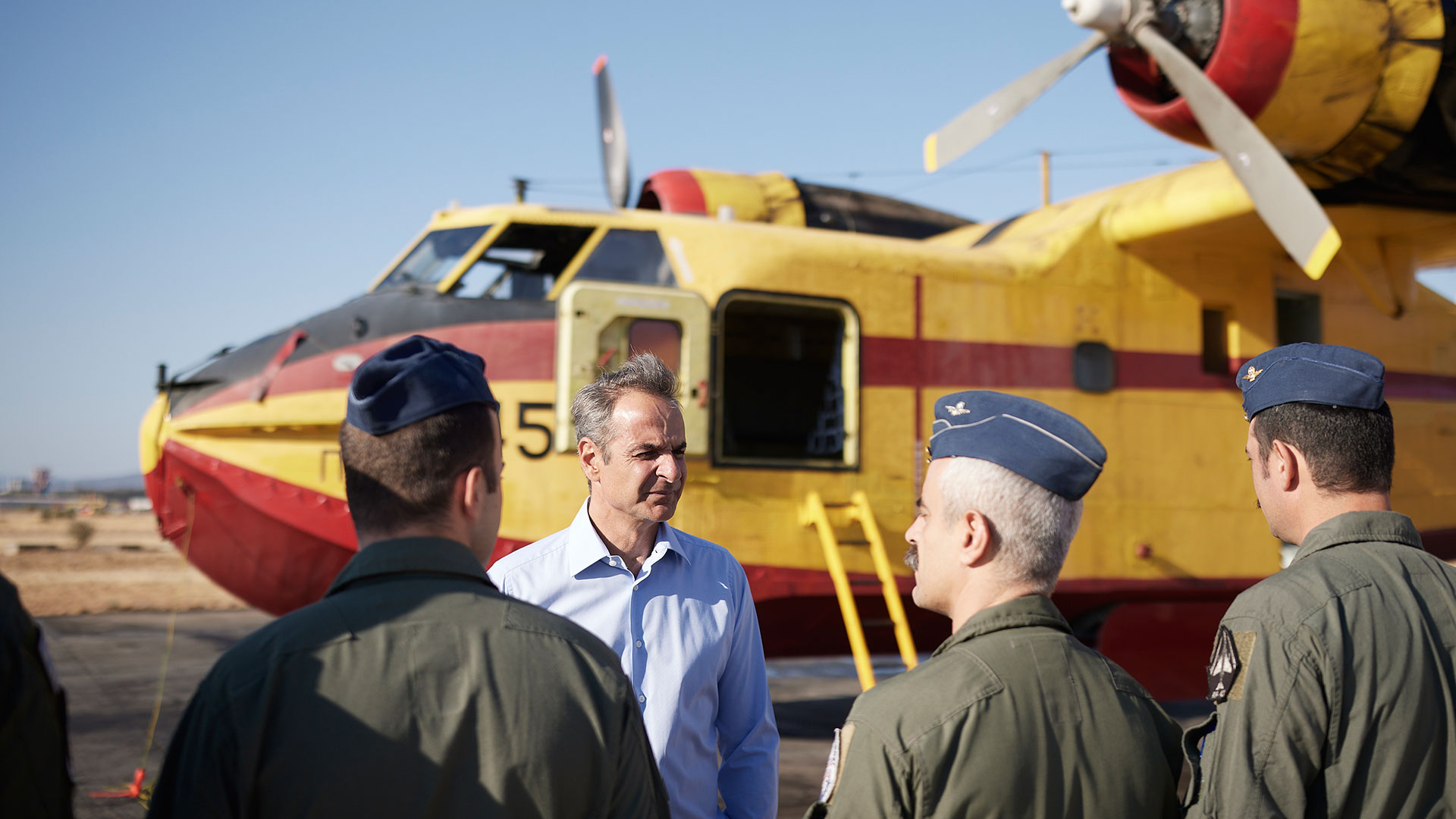 «Να σας πω ένα πολύ μεγάλο “ευχαριστώ”. Ξέρω πόσο δύσκολο είναι αυτό το οποίο κάνετε, θα έλεγα ειδικά για τους χειριστές των CL-215, έχω πλήρη αίσθηση του τι σημαίνει να πετάς με αεροπλάνα τα οποία είναι αρκετά καταπονημένα. Ξέρω και πόσο μεγάλη δουλειά γίνεται και από τους τεχνικούς υποστήριξης για να μπορείτε να κρατάτε τα αεροσκάφη στον αέρα», ανέφερε ο πρωθυπουργός, απευθυνόμενος στους πιλότους των πυροσβεστικών αεροσκαφών.