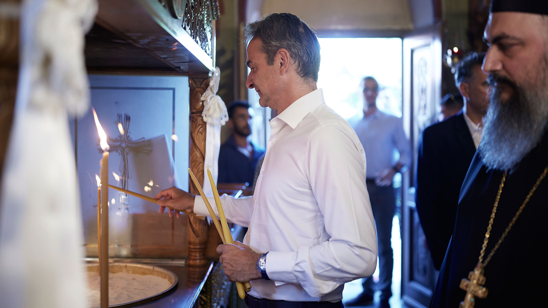 Τη μικρή παράδοση των προηγούμενων χρόνων, που επέλεγε να βρεθεί στην Τήνο τον Δεκαπενταύγουστο, άλλαξε φέτος ο πρωθυπουργός Κυριάκος Μητσοτάκης, ο οποίος επέλεξε τα Χανιά, όπου παρακολούθησε τη λειτουργία στον Ιερό Ναό Ευαγγελισμού της Θεοτόκου στις Στέρνες μαζί με τον γιο του, Κωνσταντίνο.