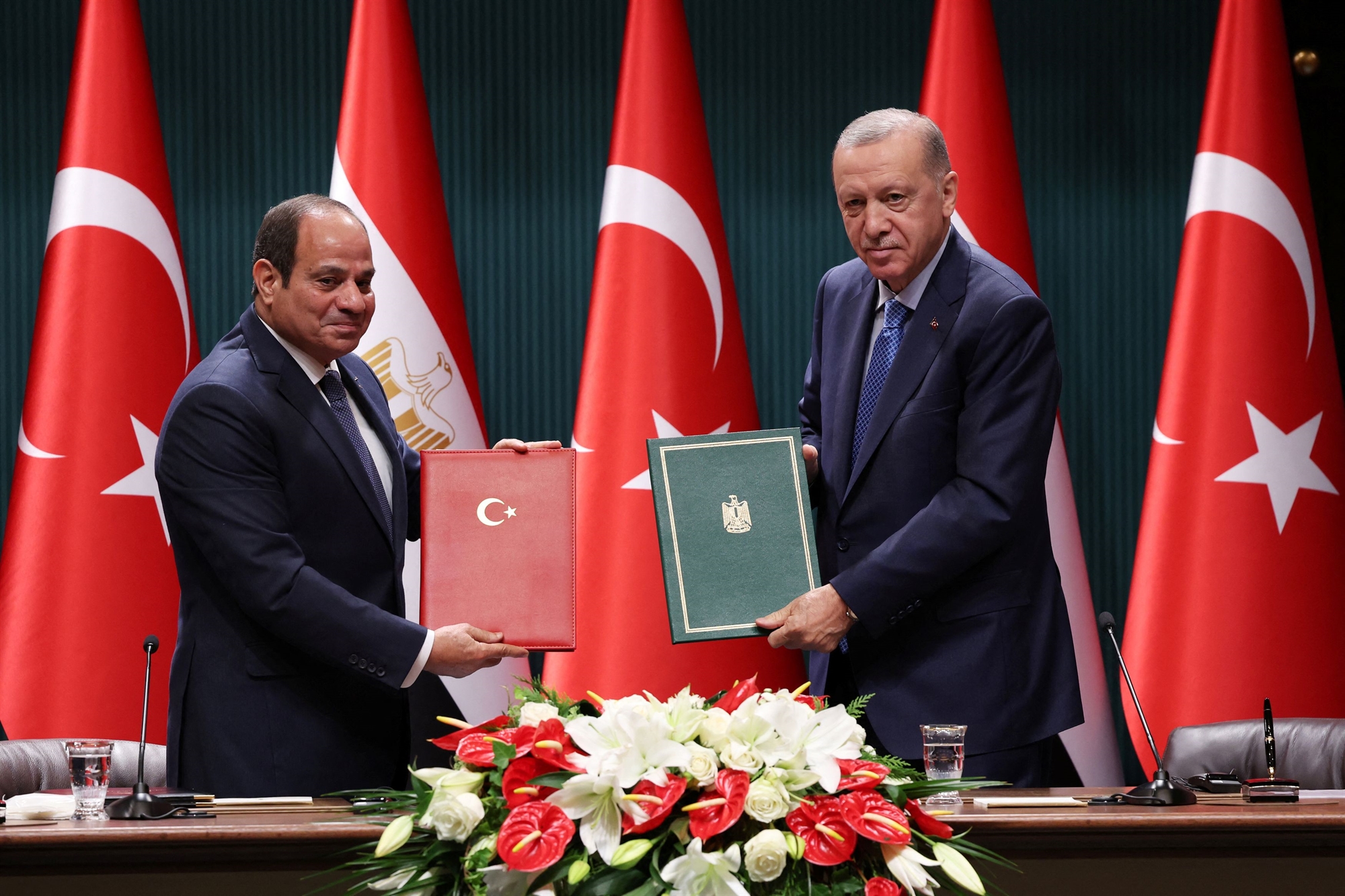 Οι σχέσεις Τουρκίας – Αιγύπτου βρέθηκαν στο ναδίρ για μια δεκαετία, αμέσως μετά την ανατροπή Μόρσι το 2013. Στο διάστημα αυτό, ο Ερντογάν χαρακτήρισε τον Σίσι δικτάτορα, με τον οποίο δεν επρόκειτο ποτέ να συναντηθεί. Στη Μουσουλμανική Αδελφότητα προσέφερε πολιτική στήριξη, ακόμη και ασφαλές καταφύγιο, έναντι του καθεστώτος Σίσι, στην Τουρκία. Στα χρόνια που ακολούθησαν η Αίγυπτος σφυρηλάτησε τις σχέσεις της με την Ελλάδα και την Κύπρο, με κορυφαία στιγμή την υπογραφή συμφωνίας τμηματικής οριοθέτησης ΑΟΖ με την Αθήνα. Το Κάιρο ήταν βέβαια προσεκτικό, ώστε από τη μία συνέβαλε μεν στον διεμβολισμό του τουρκολιβυκού συμφώνου και από την άλλη απαίτησε από την ελληνική πλευρά να μην υπερβεί τον 28ο μεσημβρινό, όπου η Τουρκία έχει αξιώσεις. Η τουρκική ηγεσία, αντιλαμβανόμενη τα επίχειρα της διάρρηξης των σχέσεών της με Ισραήλ και Αίγυπτο, υποχρεώθηκε σε ριζική αναθεώρηση της πολιτικής της. Εκλεισε γραφεία των Αδελφών Μουσουλμάνων και εξέδωσε μέλη τους στην Αίγυπτο ως ένδειξη καλής θέλησης. Ο Ερντογάν έριξε θεαματικά τους τόνους εις βάρος του Αιγύπτιου ομολόγου του και με όχημα τις σταθερά καλές εμπορικές σχέσεις, την προοπτική επενδύσεων τουρκικών εταιρειών στη χειμαζόμενη αιγυπτιακή οικονομία και τη θέση της Τουρκίας στην Αφρική (σε χώρες ενδιαφέροντος της Αιγύπτου, όπως η Αιθιοπία και η Σομαλία), προσέγγισε τον Σίσι. Πλέον, η Αγκυρα προσφέρει στο Κάιρο ακόμη και αμυντική συνεργασία και ανεπτυγμένα τουρκικά συστήματα ως δέλεαρ, ενώ πιέζει για ενεργειακές συμπράξεις σε φυσικό αέριο και πυρηνική ενέργεια, με το πλεονέκτημα της δεύτερης μεγαλύτερης αγοράς στην περιοχή, αλλά και της κατασκευής εργοστασίων πυρηνικής ενέργειας στην τουρκική επικράτεια. Προφανώς, ορισμένα από τα προαναφερθέντα σχέδια είναι μεγαλεπήβολα και πιθανόν ανεφάρμοστα, και περισσότερο δείχνουν την πρόθεση κυρίως της τουρκικής πλευράς για αποκατάσταση των σχέσεων.