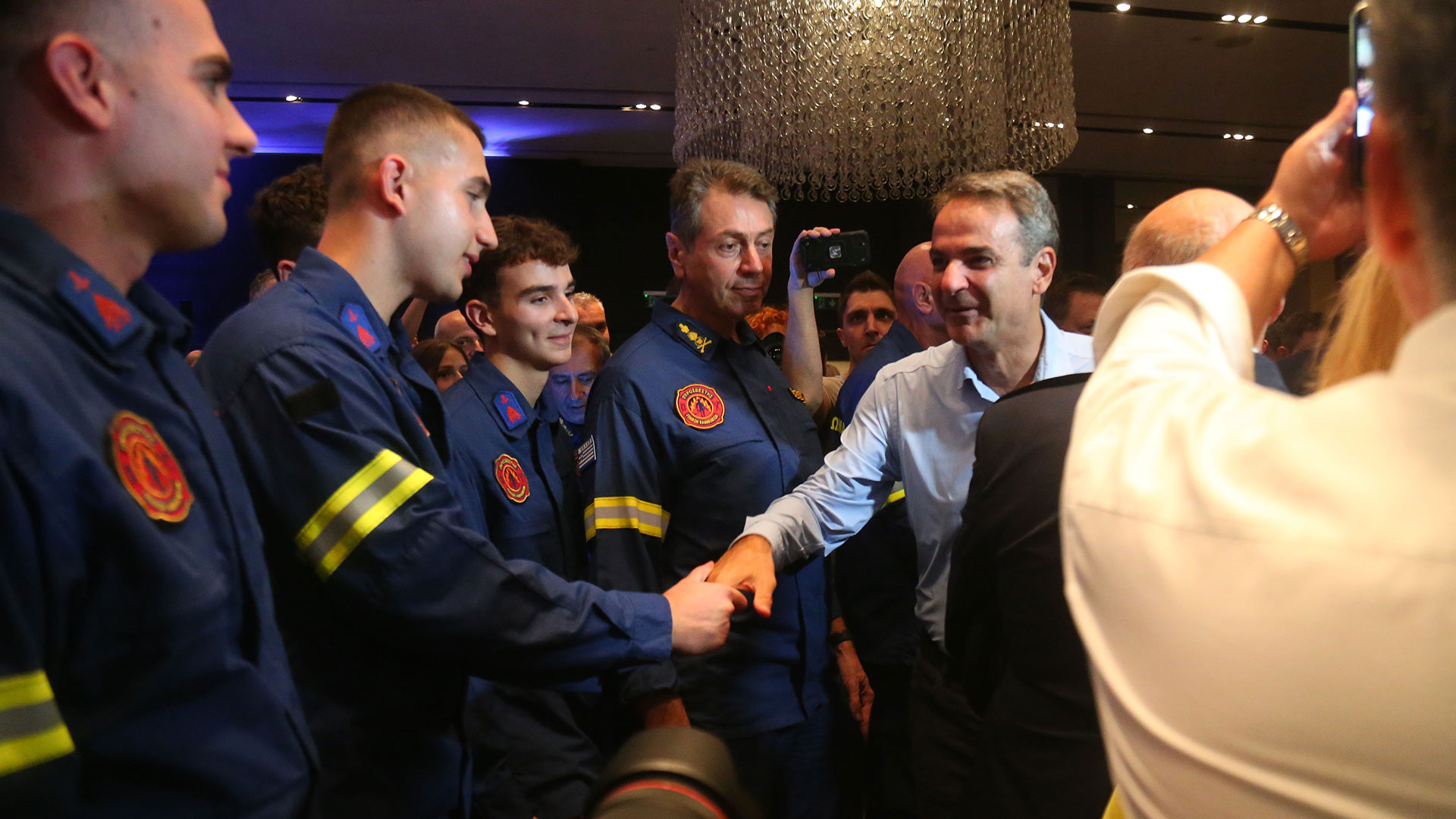 «Βρισκόμαστε εδώ για να σας πω προσωπικά ένα μεγάλο ευχαριστώ για τις μάχες που δώσατε στο πεδίο, έως σήμερα, στο πιο θερμό καλοκαίρι το οποίο έχει καταγραφεί τα τελευταία 40 χρόνια με την Κλιματική Κρίση πια να είναι παρούσα, με πολύ περισσότερες φωτιές από πέρυσι», είπε ο κ. Μητσοτάκης.