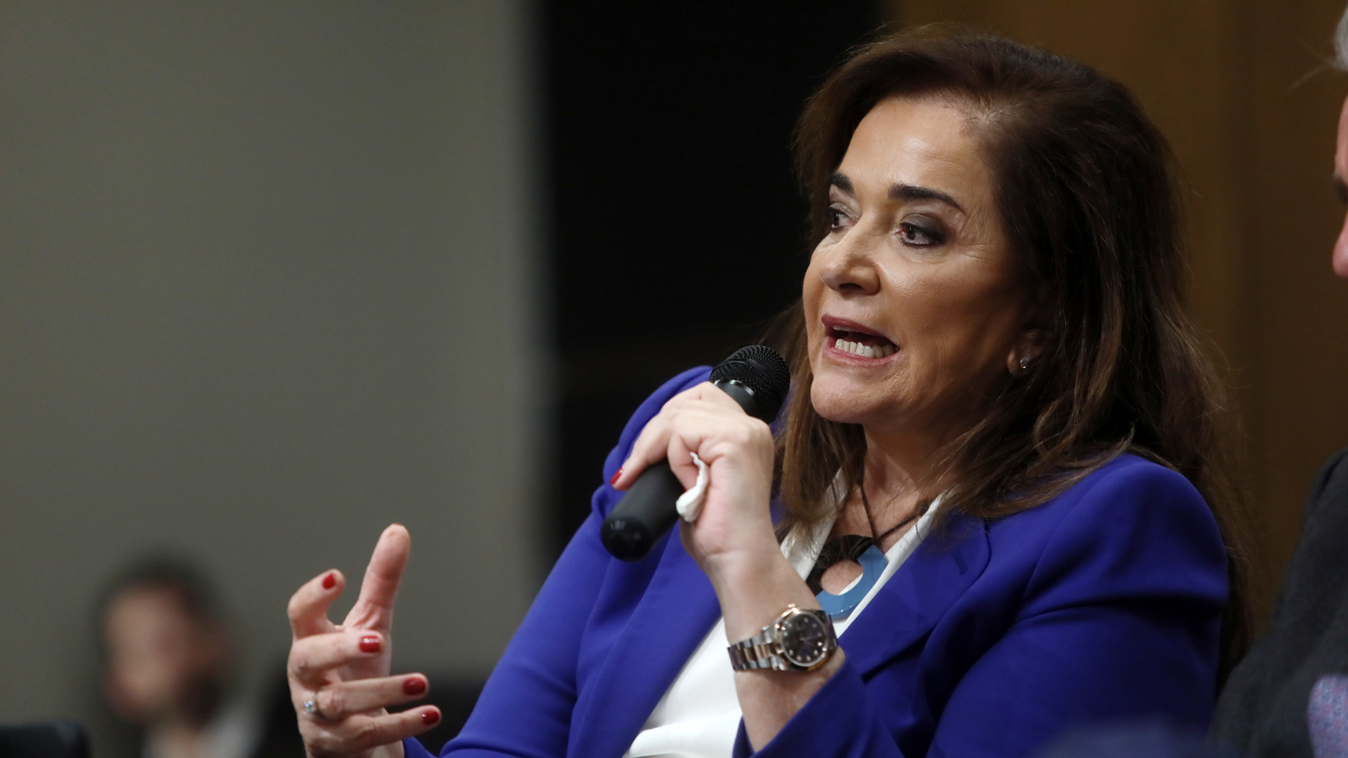 Ερωτηθείσα γιατί η ίδια αποκλείει τη δεξιά στροφή της κυβέρνησης, έσπευσε να αναφερθεί στην ιδρυτική διακήρυξη της ΝΔ, την οποία «αν την πάρετε σήμερα και τη διαβάσετε 50 χρόνια μετά, θα δείτε ότι αποτελεί σύγχρονη διακήρυξη». Προσέθεσε επίσης: «Η Ν.Δ. έχει ταυτότητα και δεν το αμφισβητεί κανείς αυτό. Ο Κωνσταντίνος Καραμανλής έλεγε ότι η Ν.Δ. είναι ένα κόμμα που δεν βρίσκεται ούτε προς τα δεξιά ούτε προς τα αριστερά, αλλά καλύπτει από την εκσυγχρονισμένη Αριστερά μέχρι τη μη φασιστοειδή Δεξιά. Οποτε κάναμε το λάθος να συμπτύξουμε αυτόν τον χώρο, φτάσαμε στο 18%».