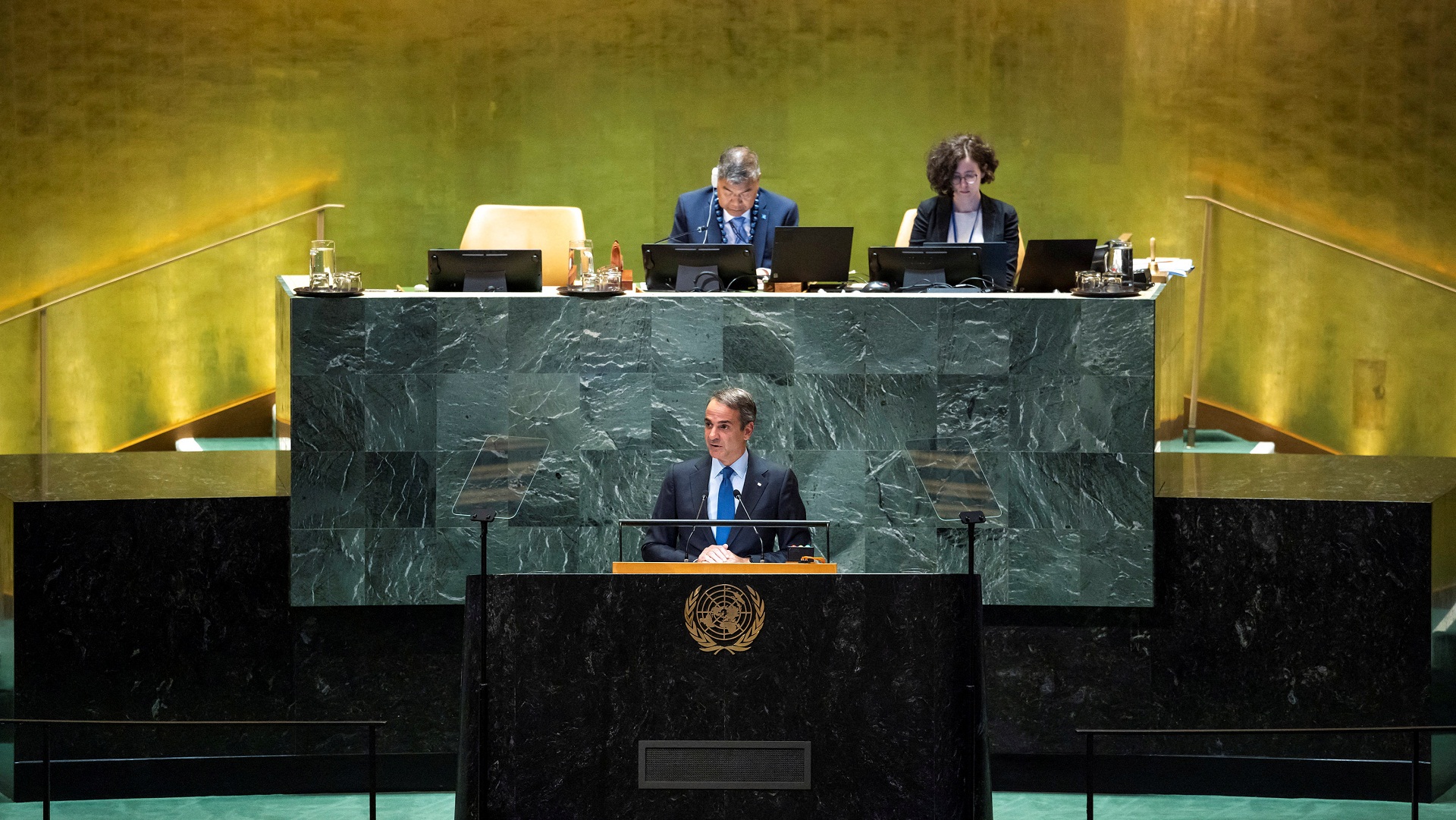 Στην ομιλία του στη Γενική Συνέλευση του ΟΗΕ, ο πρωθυπουργός Κυριάκος Μητσοτάκης τόνισε τη δέσμευση της Ελλάδας στις αρχές του διαλόγου, της διπλωματίας και της δημοκρατίας, καθώς η χώρα ετοιμάζεται να αναλάβει θέση κράτους-μη μόνιμου μέλους του Συμβουλίου Ασφαλείας του ΟΗΕ κατά την περίοδο 2025-2026.