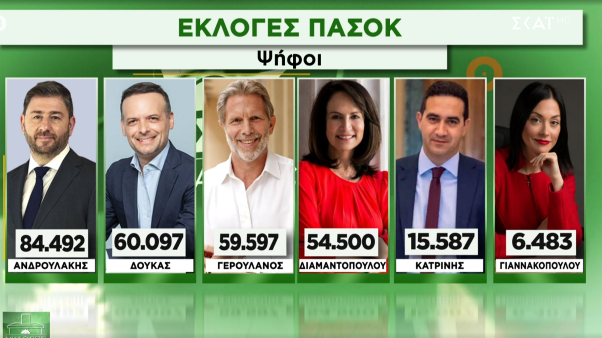 - 22:17Εκλογές στο ΠΑΣΟΚ: Πρωτιά Ανδρουλάκη, μάχη για τη δεύτερη θέση