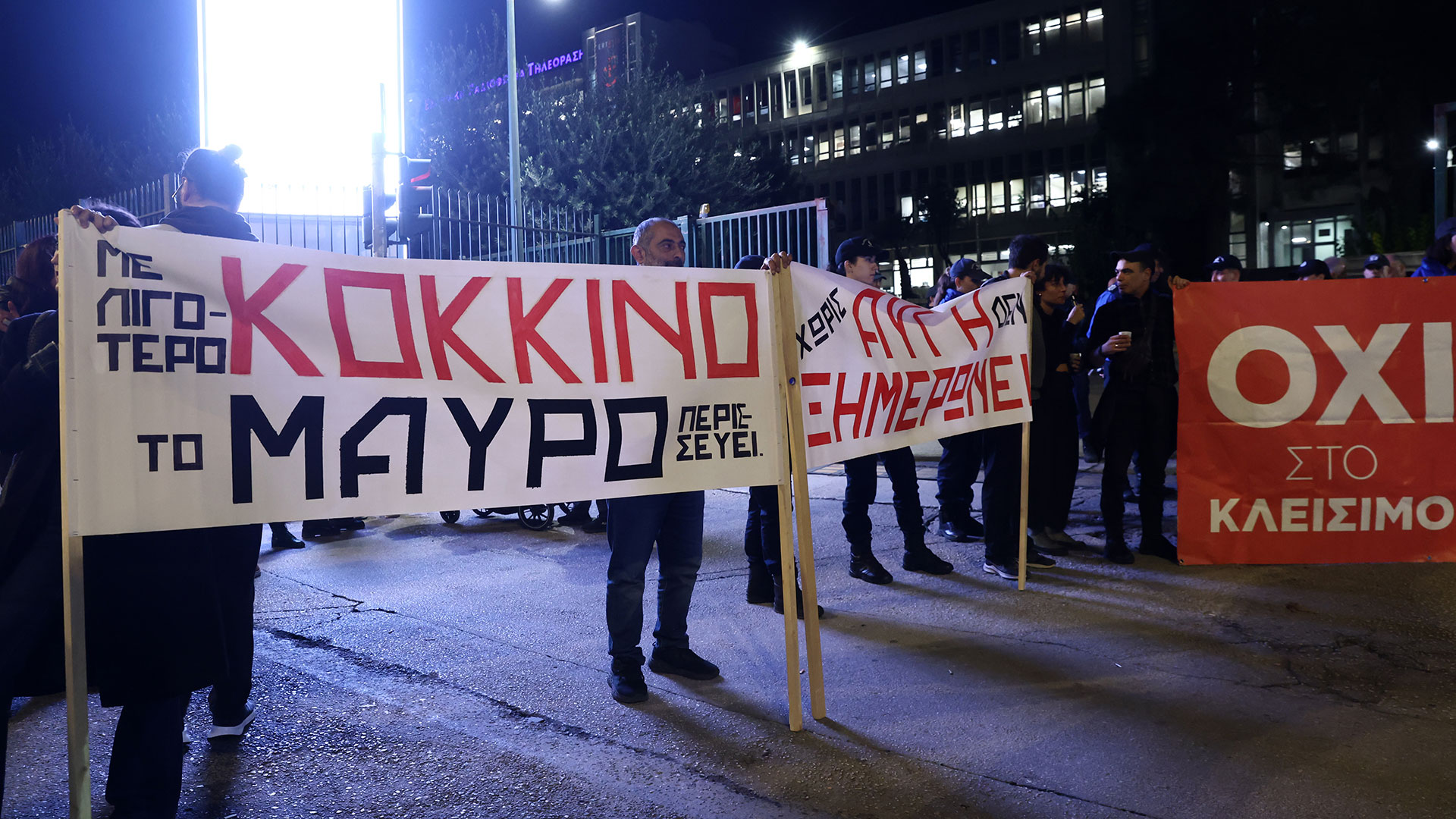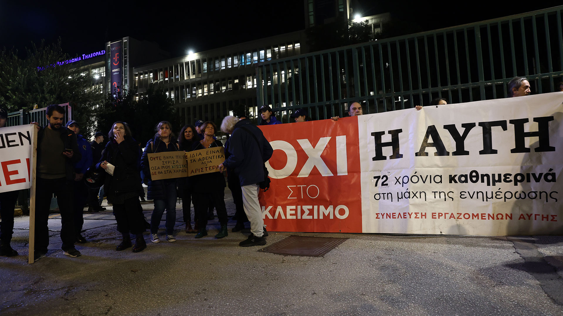 - 19:28Εργαζόμενοι στην Αυγή σε διαμαρτυρία έξω από το Ραδιομέγαρο