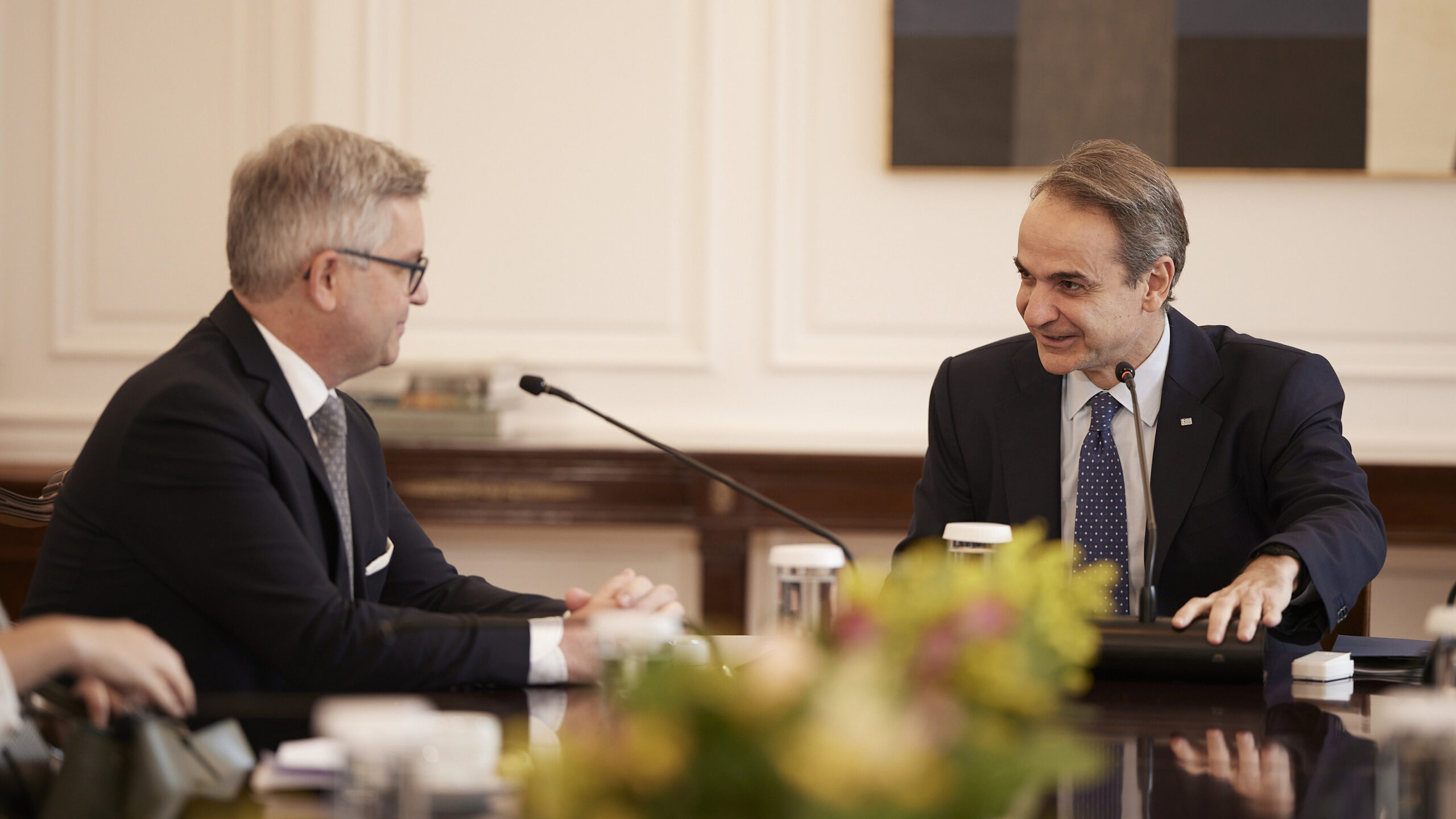 Με τον επίτροπο Εσωτερικών Υποθέσεων και Μετανάστευσης της Ευρωπαϊκής Eνωσης Μάγκνους Μπρίνερ (Magnus Brunner) συναντήθηκε στο Μέγαρο Μαξίμου, ο πρωθυπουργός Κυριάκος Μητσοτάκης.