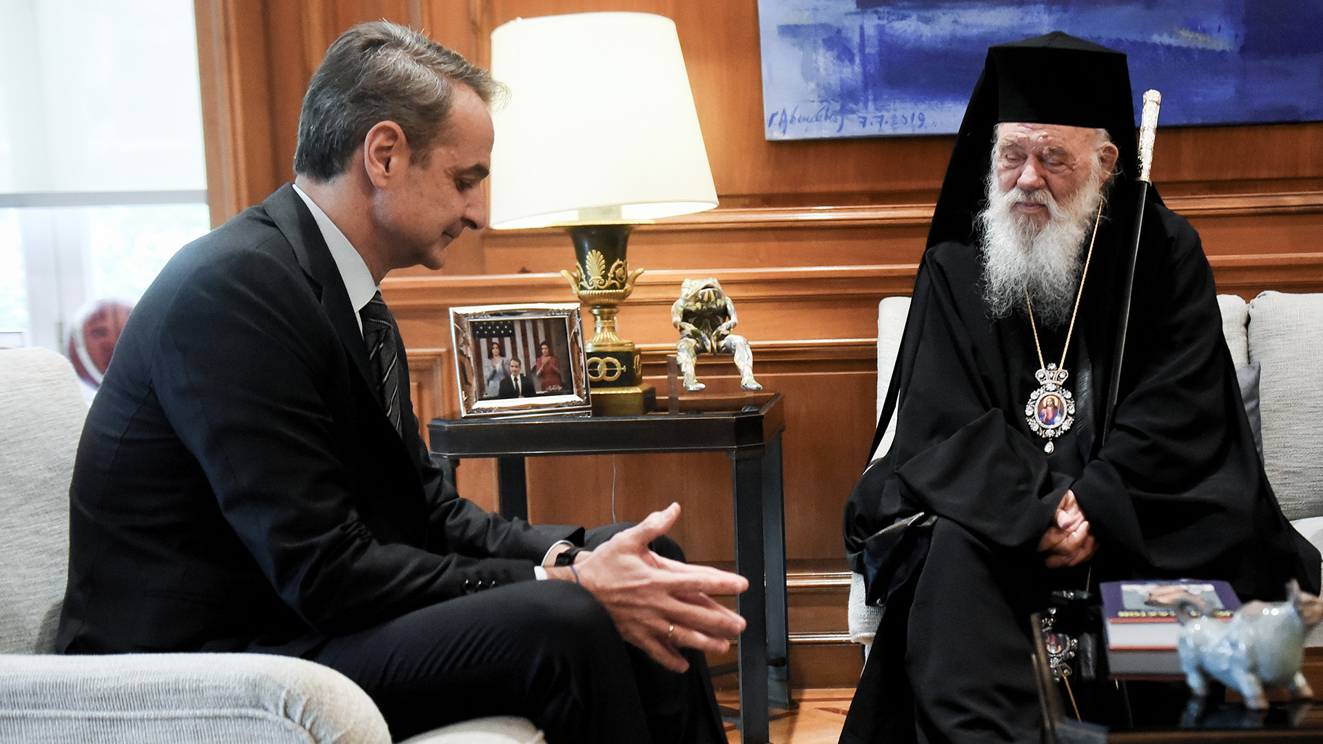 Αναφορά στην απώλεια του Αρχιεπισκόπου Αλβανίας Αναστάσιου, έκαναν, κατά της διάρκεια της σύντομης συνομιλία τους μπροστά στις κάμερες, ο πρωθυπουργός, Κυριάκος Μητσοτάκης και ο Αρχιεπίσκοπος Αθηνών και πάσης Ελλάδος, Ιερώνυμος, στη συνάντησή τους στο Μέγαρο Μαξίμου.
