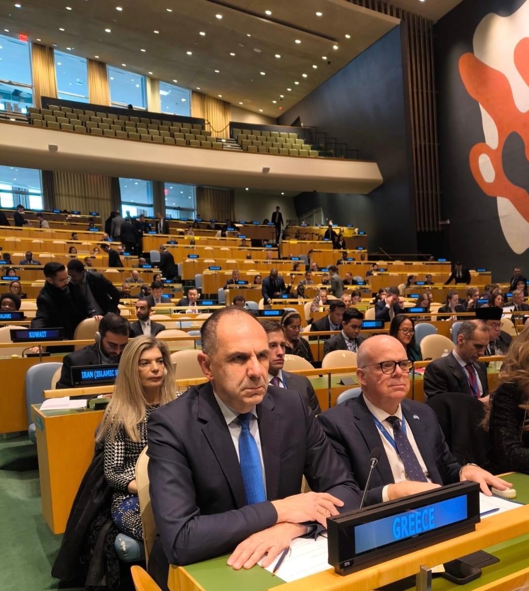 Η εξαιρετικά ρευστή κατάσταση αποτυπώθηκε στο κτίριο του ΟΗΕ, όπου ο κ. Γεραπετρίτης βρέθηκε χθες (και σήμερα), καθώς καταγράφηκε πλήρης διχασμός μεταξύ Ευρώπης και ΗΠΑ. Συγκεκριμένα οι ΗΠΑ, μαζί με τη Ρωσία και άλλες χώρες, καταψήφισαν ψήφισμα που συντάχθηκε με πρωτοβουλία της Γαλλίας και της Ε.Ε. και καταδικάζει τη ρωσική εισβολή στην Ουκρανία. Η Ελλάδα ετάχθη με την Ε.Ε. Η Κίνα ήταν ουδέτερη. Ο κ. Γεραπετρίτης ήταν παρών τόσο στη συνεδρίαση της Γενικής Συνέλευσης του ΟΗΕ για το Ουκρανικό όσο και στη συνεδρίαση του Συμβουλίου Ασφαλείας που ακολούθησε.