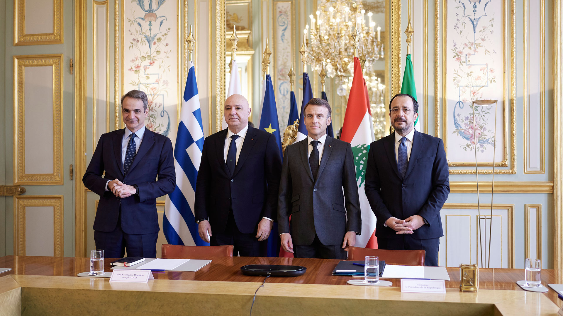 Συνάντηση με τον Γάλλο πρόεδρο Εμανουέλ Μακρόν, τον πρόεδρο της Κυπριακής Δημοκρατίας Νίκο Χριστοδουλίδη, τον πρόεδρο του Λιβάνου Ζοζέφ Αούν και τον μεταβατικό πρόεδρο της Συρίας Αχμεντ aλ Σάρα (μέσω τηλεδιάσκεψης) είχε στο Παρίσι ο πρωθυπουργός Κυριάκος Μητσοτάκης.