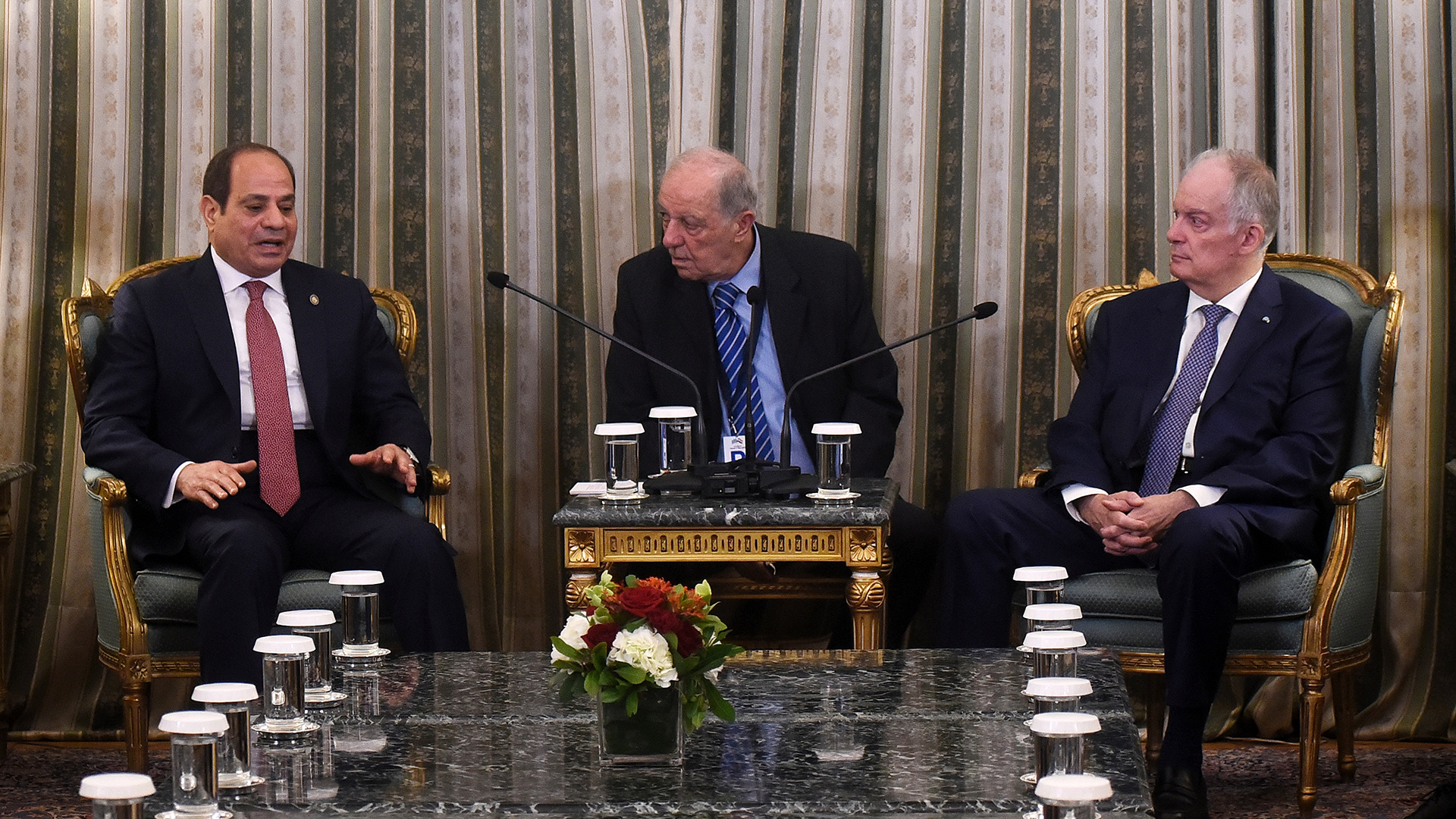 «Θέλω να μου επιτρέψετε να απευθύνω θερμό χαιρετισμό στον φίλο ελληνικό λαό» είπε ο Αιγύπτιος πρόεδρος και στη συνέχεια ανέφερε ότι η Αίγυπτος τάσσεται υπέρ της ειρήνης και ο συντονισμός των Αιγύπτου – Ελλάδας αποβλέπει στη σταθερότητα της περιοχής, ενώ σημείωσε ότι υπάρχει περιθώριο βελτίωσης των σχέσεων των δύο χωρών.