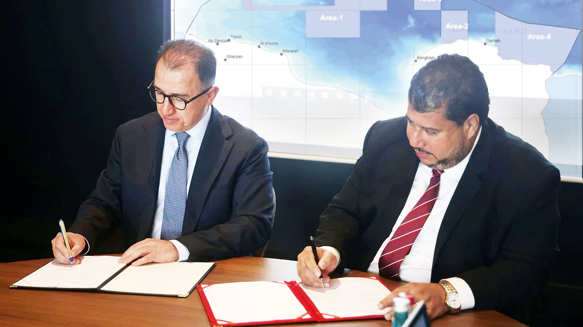 Αλλωστε κατά τη διάρκεια της χθεσινής συνεδρίασης TPAO – NOC, στις φωτογραφίες που αναρτήθηκαν στην ιστοσελίδα του NOC τα στελέχη των εταιρειών εμφανίζονται να μιλούν με φόντο δύο χάρτες, σε δύο διαφορετικές φάσεις. Ετσι δημοσιεύονται δύο χάρτες, τόσο αυτός που περιλαμβάνει τα τέσσερα οικόπεδα που έχουν επιλεγεί για έρευνες, όσο και εκείνος που απεικονίζει το τουρκολιβυκό μνημόνιο.
