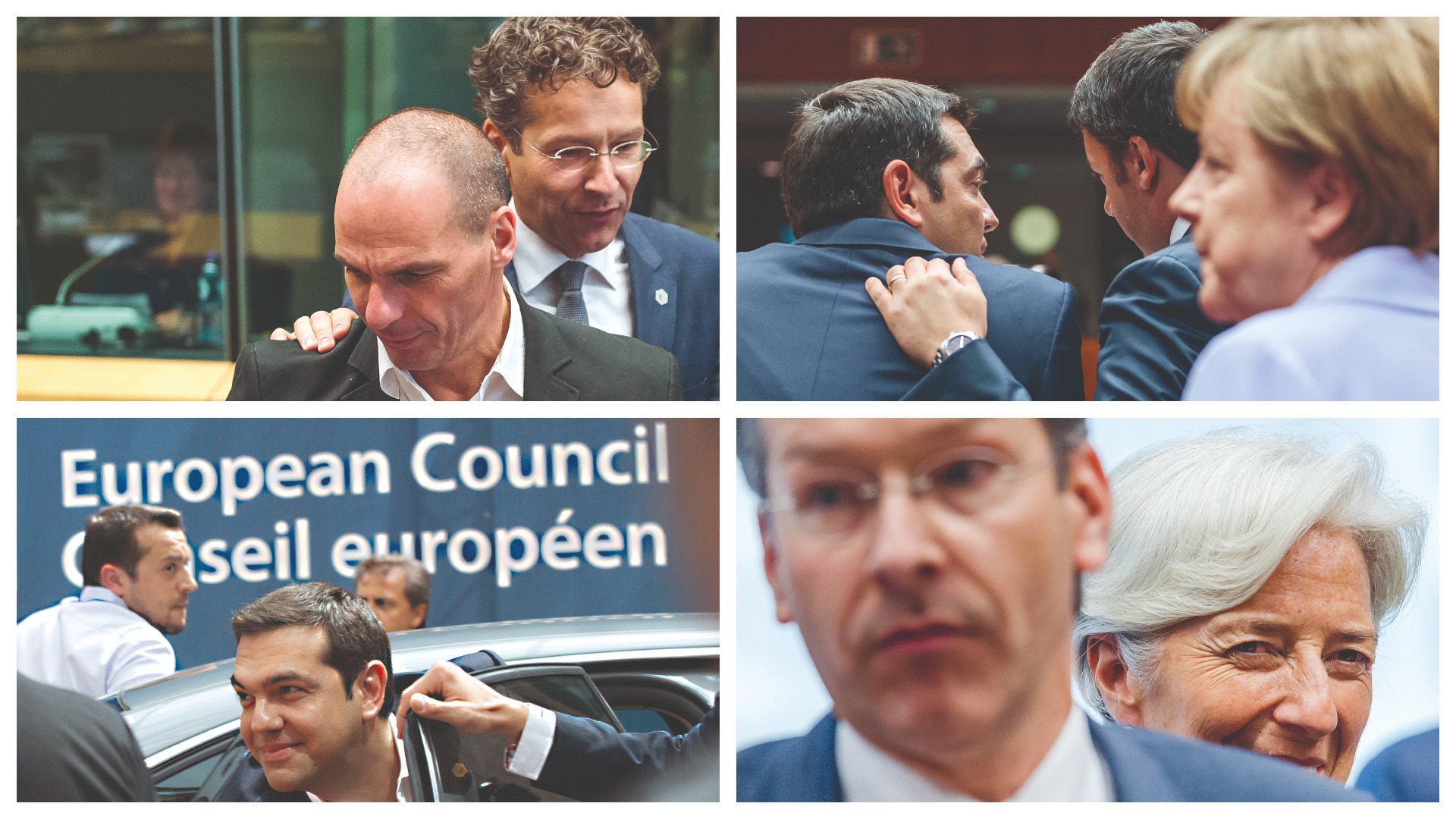 Στην αίθουσα του Eurogroup όλοι περίμεναν να ακούσουν τον Γιάνη Βαρουφάκη. Οι εικόνες από τις ουρές στα ελληνικά ΑΤΜ έκαναν τον γύρο του κόσμου. Και όμως, ο Βαρουφάκης φαινόταν ήρεμος. Ζήτησε την παράταση του προγράμματος για να διεξαχθεί ομαλά το δημοψήφισμα. Ξεφυσήματα και ειρωνικά γέλια ακούστηκαν από τους υπολοίπους.