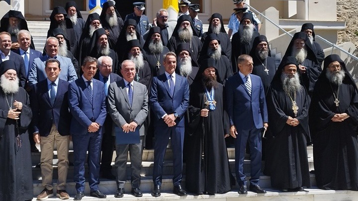 «Γιατί, το Αγιο Ορος δεν αποτελεί απλά έναν χώρο ιερό, αλλά ένα φωτισμένο κέντρο πνευματικής προσφοράς, που γίνεται πυξίδα, όπως είπατε εξάλλου, σε έναν κόσμο που μοιάζει συχνά να χάνει τον προσανατολισμό του. Και με τον αναστοχασμό του να ηχεί πιο δυνατά από κάθε φωνή και την πίστη του να γίνεται δύναμη για όλους. Και με ένα λόγο, που αποκτά μία ξεχωριστή, μια ιδιαίτερη σημασία στις ταραγμένες μέρες μας. Ιδίως για μας τους Ελληνες ο Αθως υπήρξε ανέκαθεν ένας τόπος προσωπικής γαλήνης, περισυλλογής και ανάτασης. Ταυτόχρονα, όμως, υπήρξε και μία πηγή συλλογικής ελπίδας. Για αυτό και η παρουσία μου σήμερα εδώ δηλώνει την έμπρακτη βούληση της κυβέρνησης να σταθεί αρωγός σε αυτήν τη διαχρονική πορεία του. Ενα μήνυμα, που επαναλαμβάνω, ότι μεταφέρω εδώ και ως πρωθυπουργός αλλά και ως απλός προσκυνητής. Στη συνέχεια θα έχουμε την ευκαιρία να συζητήσουμε για το σχέδιό μας για τη σημαντική οικονομική στήριξη των μονών του Αγίου Ορους με 100 εκατ. ευρώ έως το 2030, έτσι ώστε να μπορέσουμε να δρομολογήσουμε εξαιρετικά σημαντικά έργα που αφορούν πολλά και διαφορετικά πεδία».