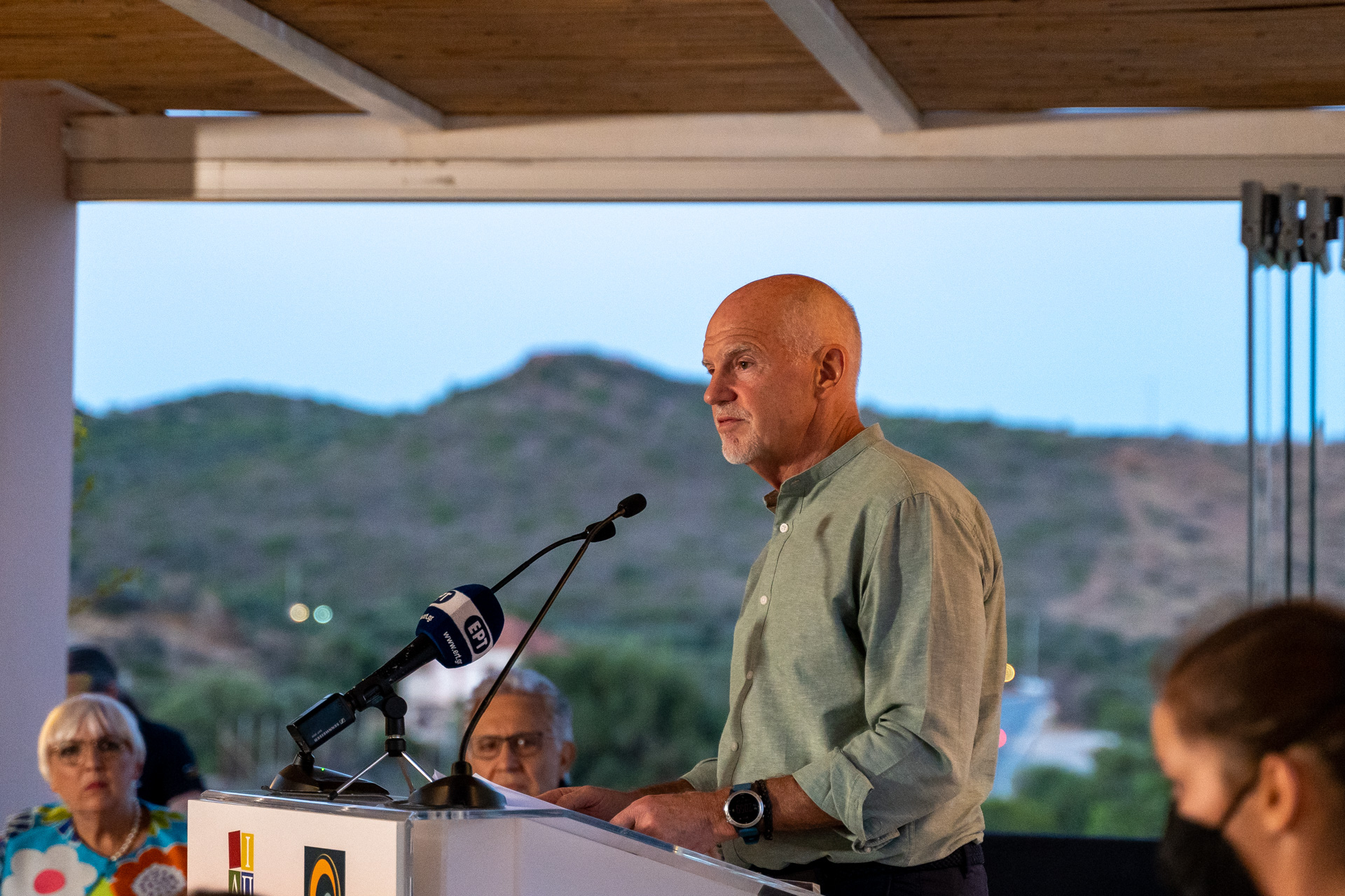 Μπορούμε να χτίσουμε ένα άλλο μέλλον», επισήμανε και συμπλήρωσε πώς «σε έναν κόσμο κατακερματισμένο, όπου η απογοήτευση, ο φόβος, η ανασφάλεια, ακόμη και το μίσος και η οργή μας κυκλώνουν, αυτό που θα κάνουμε εδώ αυτές τις ημέρες-στη Σκιάθο, ίσως να είναι η πιο ριζοσπαστική πράξη όλων: Να σκεφτούμε μαζί. Να αισθανθούμε μαζί. Να φανταστούμε ξανά.»