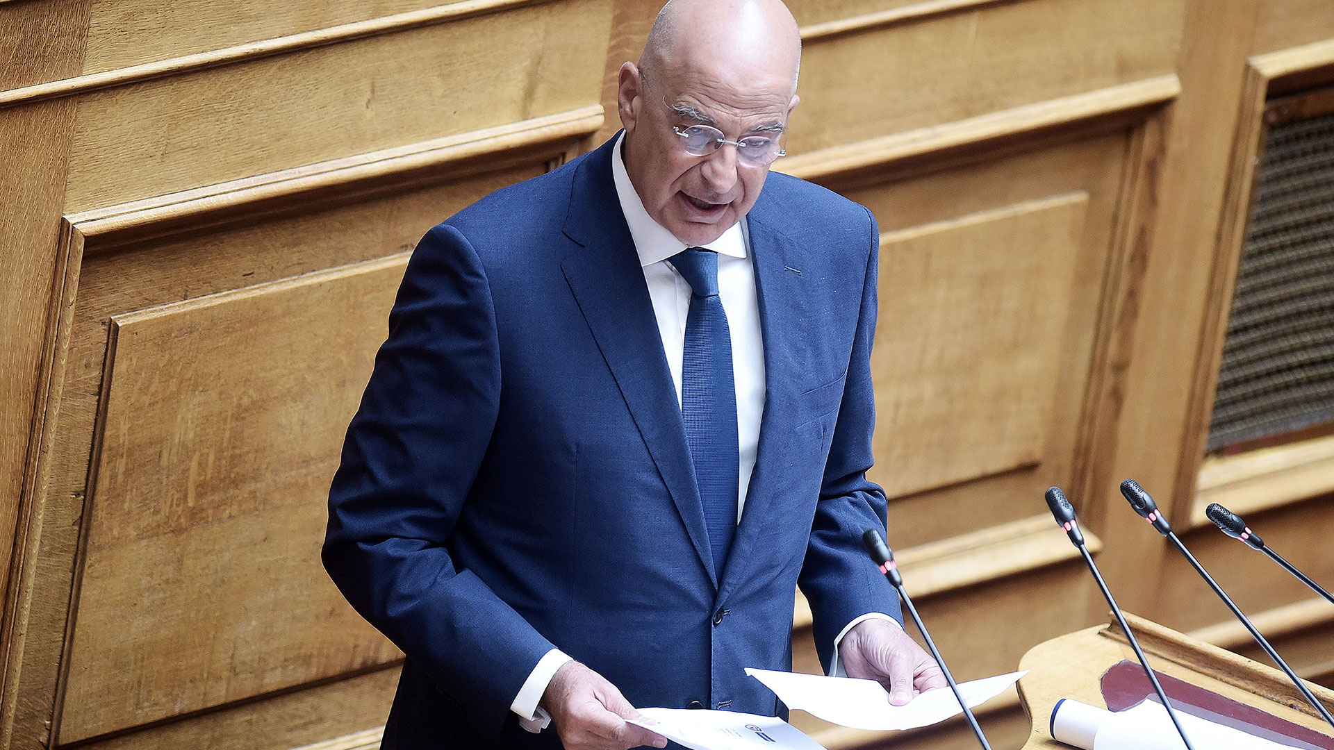 « Σας εκφράζω, κύριες και κύριοι συνάδελφοι, μια βαθιά αγωνία. Δεν σας εκφράζω ανάγκη πολιτικής δικαίωσης, δεν είναι αυτό το ζητούμενο. Υφίσταται μεγάλη και μεγεθυνόμενη απειλή. Δεν μπορούμε να τα αντιμετωπίζουμε αυτά τα πράγματα με τη λογική που αντιμετωπίζουμε άλλα που αφορούν την εσωτερική έννομη τάξη κι εκεί, αν κάτι γίνει στραβό δεν έχει σημασία, θα το διορθώσει ο επόμενος. Οφείλουμε να δημιουργήσουμε χθες, όχι αύριο ή μεθαύριο, μια δυνατότητα αποτροπής, ενός διαρκώς ισχυροποιημένου και εξαιρετικά διεκδικητικού γείτονα. Ολα αυτά που βλέπουμε, η «γαλάζια πατρίδα» δεν υπήρχε ως θεώρημα εδώ και δέκα ή εδώ και οκτώ χρόνια», πρόσθεσε ο υπουργός Εθνικής Αμυνας.