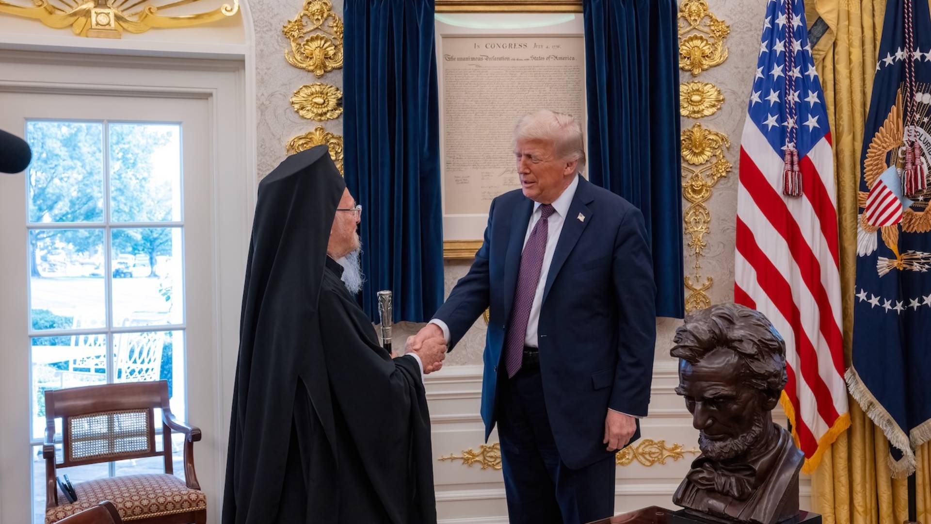 Μετά την επίσημη συνάντησή του με τον πρόεδρο των ΗΠΑ, Ντόναλντ Τραμπ, στον Λευκό Οίκο, ο Οικουμενικός Πατριάρχης Βαρθολομαίος παραχώρησε συνέντευξη Τύπου στην οποία αναφέρθηκε σε σειρά θεμάτων όπως η συνάντηση στο Οβάλ Γραφείο, οι προτεραιότητες της Εκκλησίας, η Θεολογική Σχολή της Χάλκης, η κατάσταση των χριστιανών στην Τουρκία και τη Μέση Ανατολή, η Ουκρανία και ο διαθρησκειακός διάλογος που βρίσκεται σε εξέλιξη.