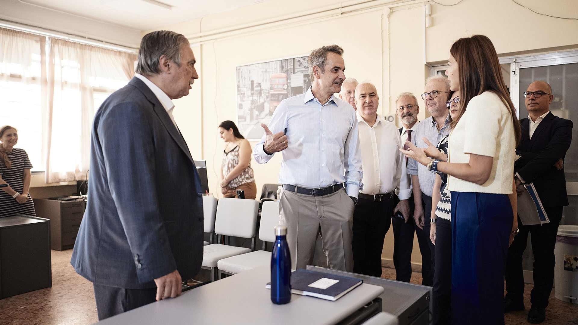 Ο πρωθυπουργός Κυριάκος Μητσοτάκης επισκέφθηκε το πρωί τα δημόσια Ωνάσεια Σχολεία στο Περιστέρι, δύο από τα συνολικά 22 σχολεία σε όλη τη χώρα τα οποία αναβαθμίζονται σε πρότυπα σχολεία με δωρεά του Ιδρύματος Ωνάση, εκ των οποίων 12 έχουν ήδη μετατραπεί σε ΔΗΜ.Ω.Σ.