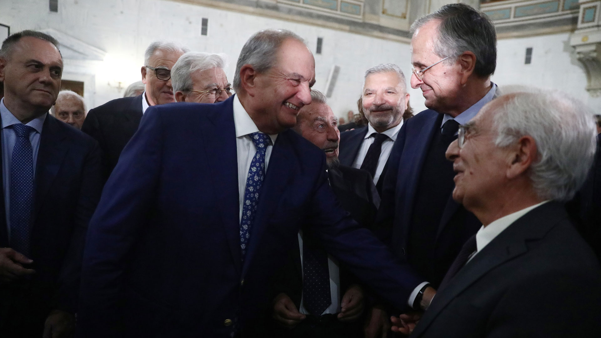 Ο Αντώνης Σαμαράς έδωσε το «παρών» στην εκδήλωση που πραγματοποιήθηκε στην Παλαιά Βουλή προς τιμήν της Αννας Μπενάκη-Ψαρούδα, της πρώτης γυναίκας που διετέλεσε πρόεδρος της Βουλής των Ελλήνων. Ο πρώην πρωθυπουργός παρακολούθησε την ομιλία του Κώστα Καραμανλή και αντάλλαξε μαζί του μια θερμή χειραψία.