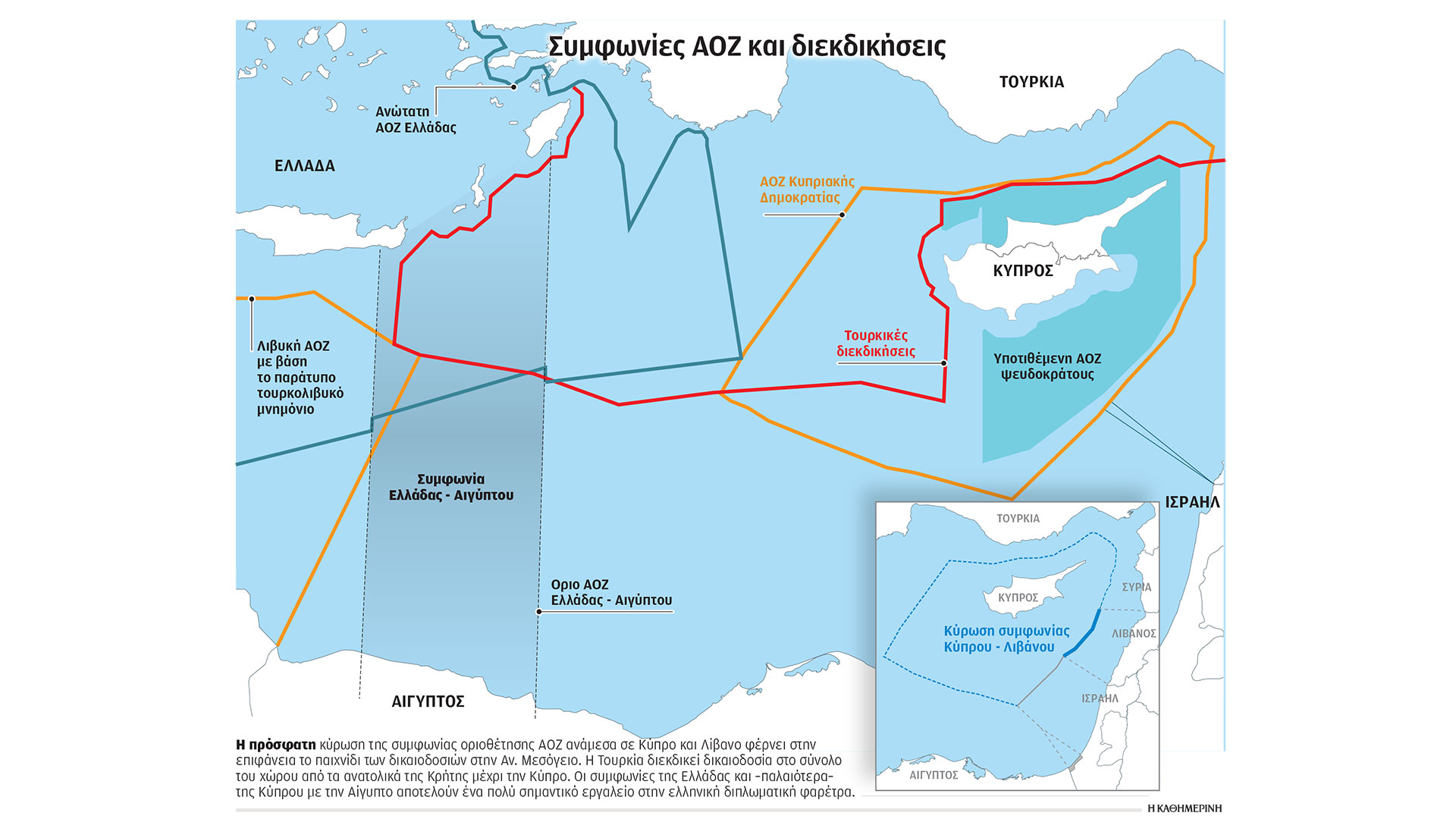 Σε γενικές γραμμές, πάντως, στην Ανατολική Μεσόγειο υπάρχει κινητικότητα, με τελευταίο παράδειγμα την κύρωση από την πλευρά του Λιβάνου της συμφωνίας του 2007 για συμφωνία οριοθέτησης θαλασσίων συνόρων με την Κυπριακή Δημοκρατία, μάλιστα με τρόπο που οριστικοποιείται και το τριμερές όριο με εκείνη του Ισραήλ (είχε συμφωνηθεί ανάμεσα σε Ιερουσαλήμ και Βηρυτό τον Οκτώβριο του 2022). Στο άλλο σημείο όπου συναντώνται τα συμφέροντα και τρίτου μέρους, δηλαδή με τη Συρία, γίνεται αναφορά για ανάγκη οριοθέτησης στο μέλλον.