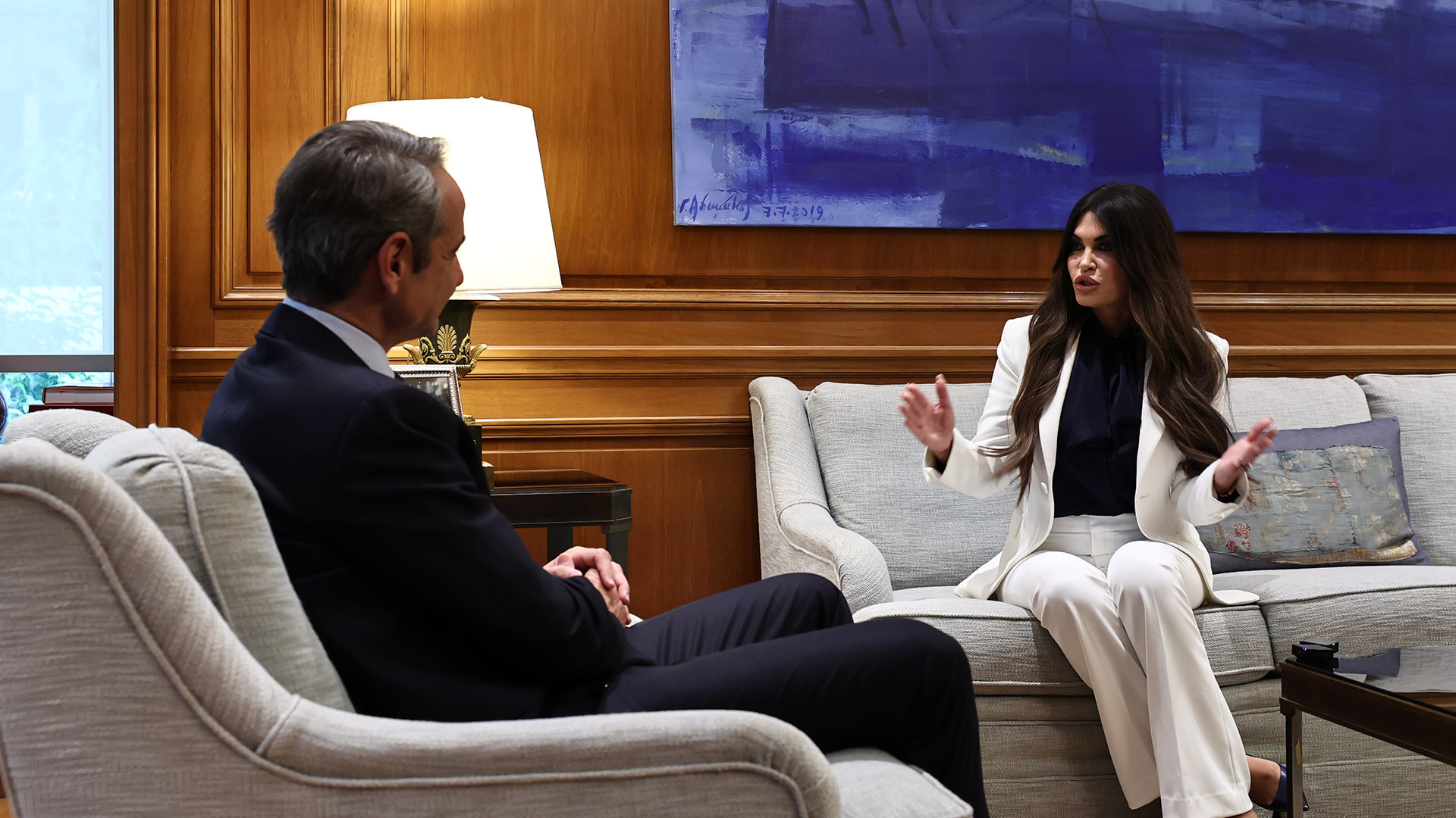 «Οι σχέσεις μας με τις ΗΠΑ είναι σε ιστορικά υψηλό σημείο και μπορούν να φτάσουν σε ακόμα καλύτερο», ανέφερε ο πρωθυπουργός απευθυνόμενος προς την κ. Γκίλφοϊλ στον σύντομο διάλογο που είχαν μπροστά στις κάμερες.