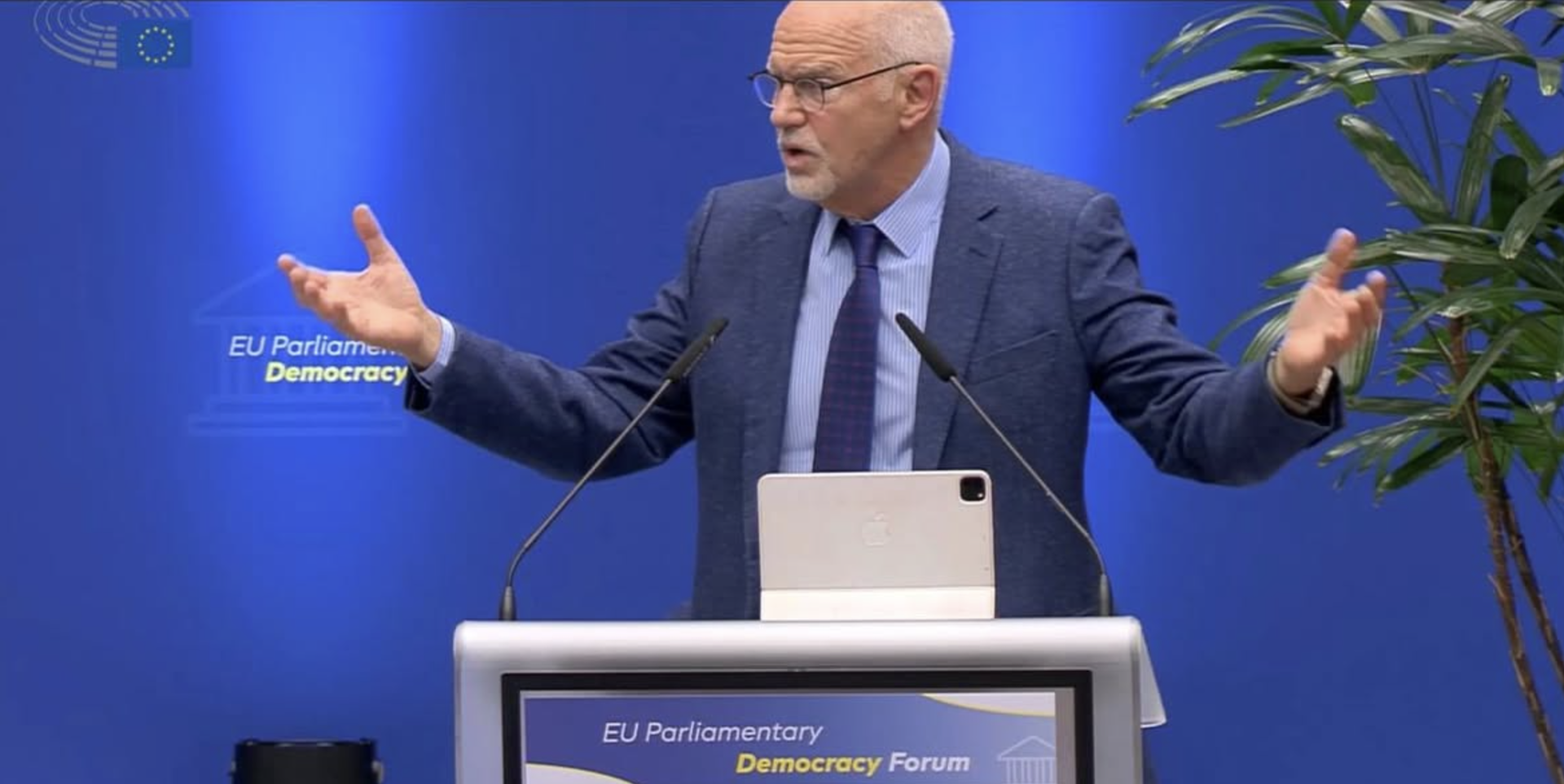 «Πρέπει να ξαναεφεύρουμε τη δημοκρατία πριν τη διαλύσουν άλλοι. Εχουμε τη δύναμη, αν επιλέξουμε να τη χρησιμοποιήσουμε», υπογράμμισε ο πρώην πρωθυπουργός και νυν γενικός εισηγητής για τη Δημοκρατία στο Συμβούλιο της Ευρώπης, Γιώργος Παπανδρέου, στη συζήτηση στο EU Parliamentary Democracy Forum, που πραγματοποιήθηκε στο Ευρωπαϊκό Κοινοβούλιο στις Βρυξέλλες.
