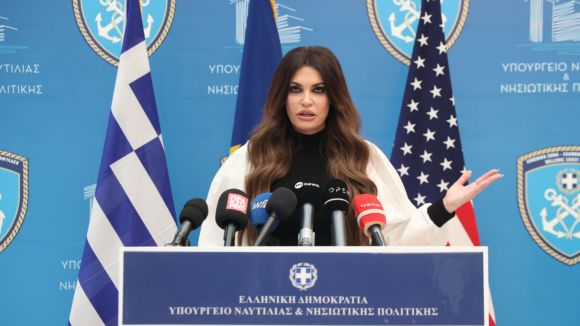 Λίγο αργότερα ακολουθούν οι δηλώσεις του υπουργού Ναυτιλίας και Νησιωτικής Πολιτικής και της πρέσβειρας των ΗΠΑ.