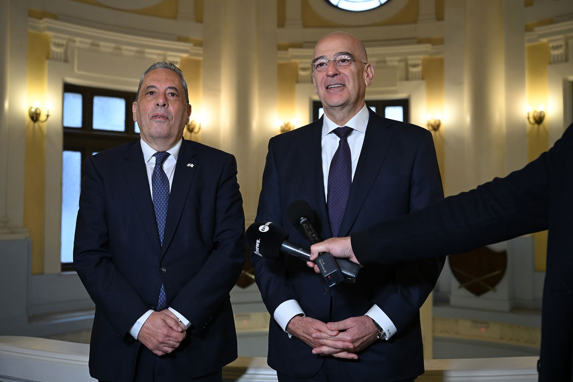 Από την πλευρά του, ο κ. Πάλμας ευχαρίστησε ακόμη μία φορά τον κ. Δένδια για την «άμεση ανταπόκριση της Ελλάδας, με τις φρεγάτες και τα μαχητικά αεροσκάφη που απέστειλε από την πρώτη στιγμή στην Κυπριακή Δημοκρατία για να φτιαχτεί αυτή η ομπρέλα προστασίας της Κύπρου λόγω της παρατεταμένης κρίσης στην περιοχή».