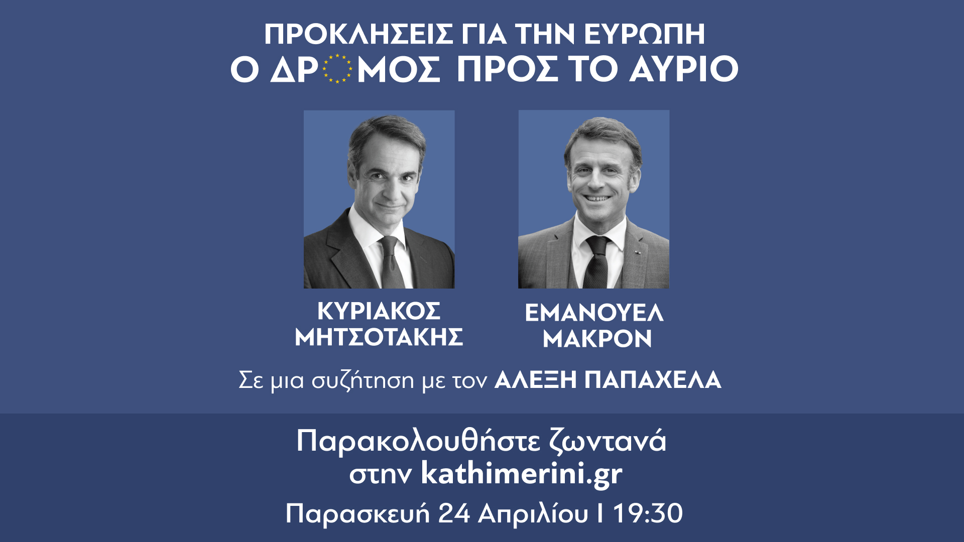 Σε μια κρίσιμη και ρευστή γεωπολιτικά εποχή, ο Πρόεδρος της Γαλλίας Εμανουέλ Μακρόν και ο Πρωθυπουργός της Ελλάδας Κυριάκος Μητσοτάκης θα συναντηθούν την Παρασκευή 24 Απριλίου, στις 19:30, στον αρχαιολογικό χώρο της Ρωμαϊκής Αγοράς Αθηνών, για να συζητήσουν σχετικά με τις προκλήσεις που αντιμετωπίζει σήμερα η Ευρώπη και τον δρόμο προς το αύριο.