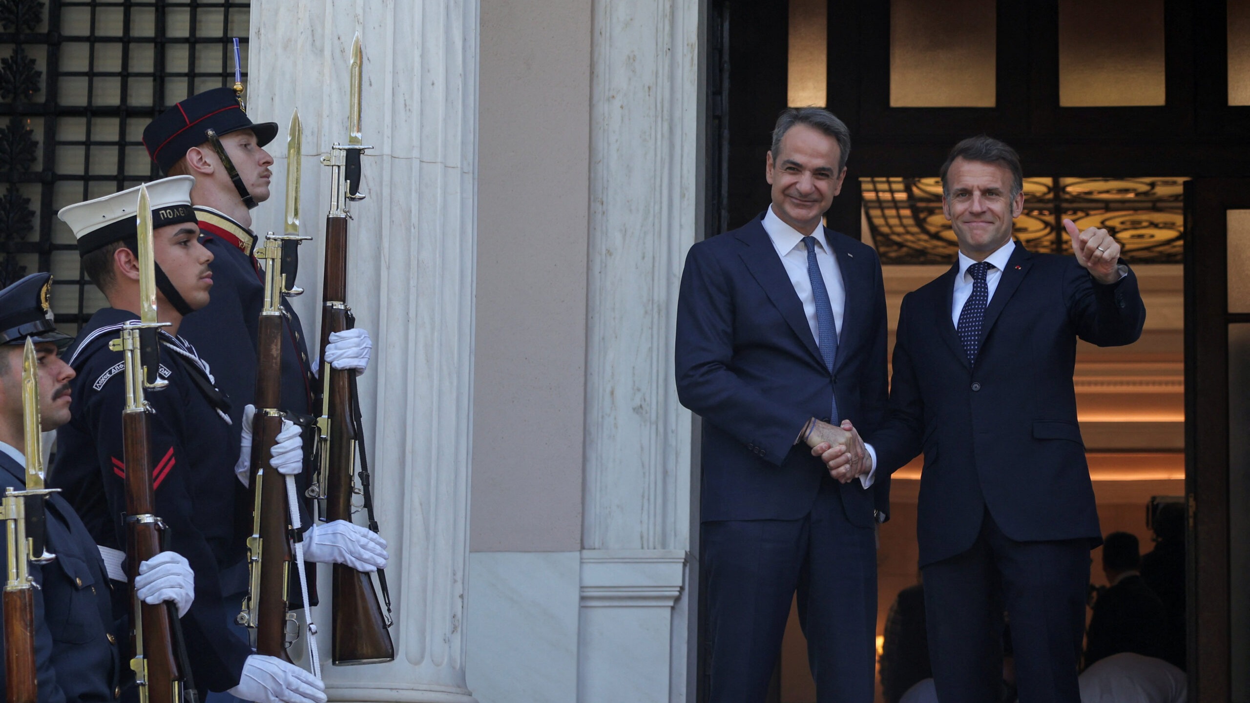 Τελετή υπογραφής σειράς συμφωνιών μεταξύ Ελλάδας και Γαλλίας πραγματοποιήθηκε στο Μέγαρο Μαξίμου, ξεκινώντας από την ενισχυμένη Συνολική Στρατηγική Εταιρική Σχέση, από τον πρωθυπουργό Κυριάκο Μητσοτάκη και τον Προέδρο της Γαλλίας Εμανουέλ Μακρόν.