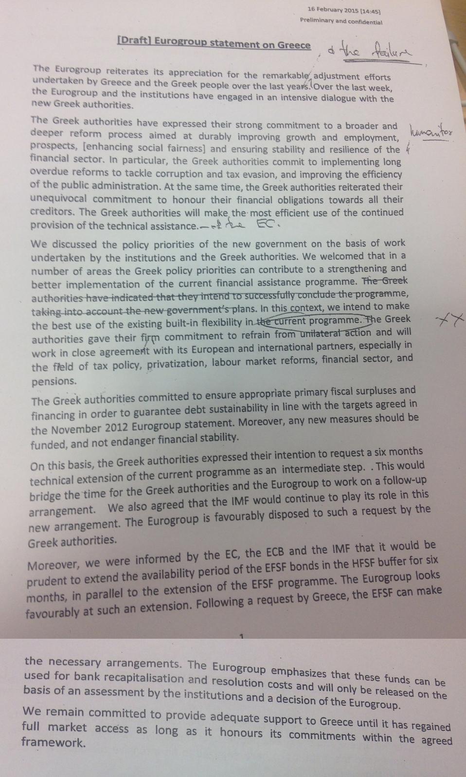 Το προσχέδιο του εγγράφου που δόθηκε στη δημοσιότητα και απέρριψε ο Γ. Βαρουφάκης.