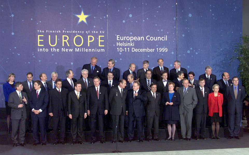 Οπως αναφέρει ο Κώστας Σημίτης στο βιβλίο του «Πολιτική για μια δημιουργική Ελλάδα 1996-2004» (εκδόσεις Πόλις, 2005), από το 1997 έως τη Σύνοδο του Ελσίνκι (10-11 Δεκεμβρίου 1999) εργάστηκαν συστηματικά με επαφές σε όλες τις ευρωπαϊκές πρωτεύουσες ο Νίκος Θέμελης, ο Γιάννος Κρανιδιώτης, ο καθηγητής Χρήστος Ροζάκης, οι πρέσβεις Αριστείδης Αγαθοκλής και Θεόδωρος Σωτηρόπουλος, ο Θεόδωρος Πάγκαλος και ο Γιώργος Παπανδρέου που διαδέχθηκε τον κ. Πάγκαλο στο υπουργείο Εξωτερικών την άνοιξη του 1999. Είκοσι ημέρες πριν από το Ελσίνκι, ο πρόεδρος Κλίντον επισκέφθηκε μια Αθήνα «βομβαρδισμένη» από διαδηλωτές αγανακτισμένους κατά των ΗΠΑ. Υποστήριξε, όμως, την αρχή της παραπομπής των διαφορών στη Χάγη.