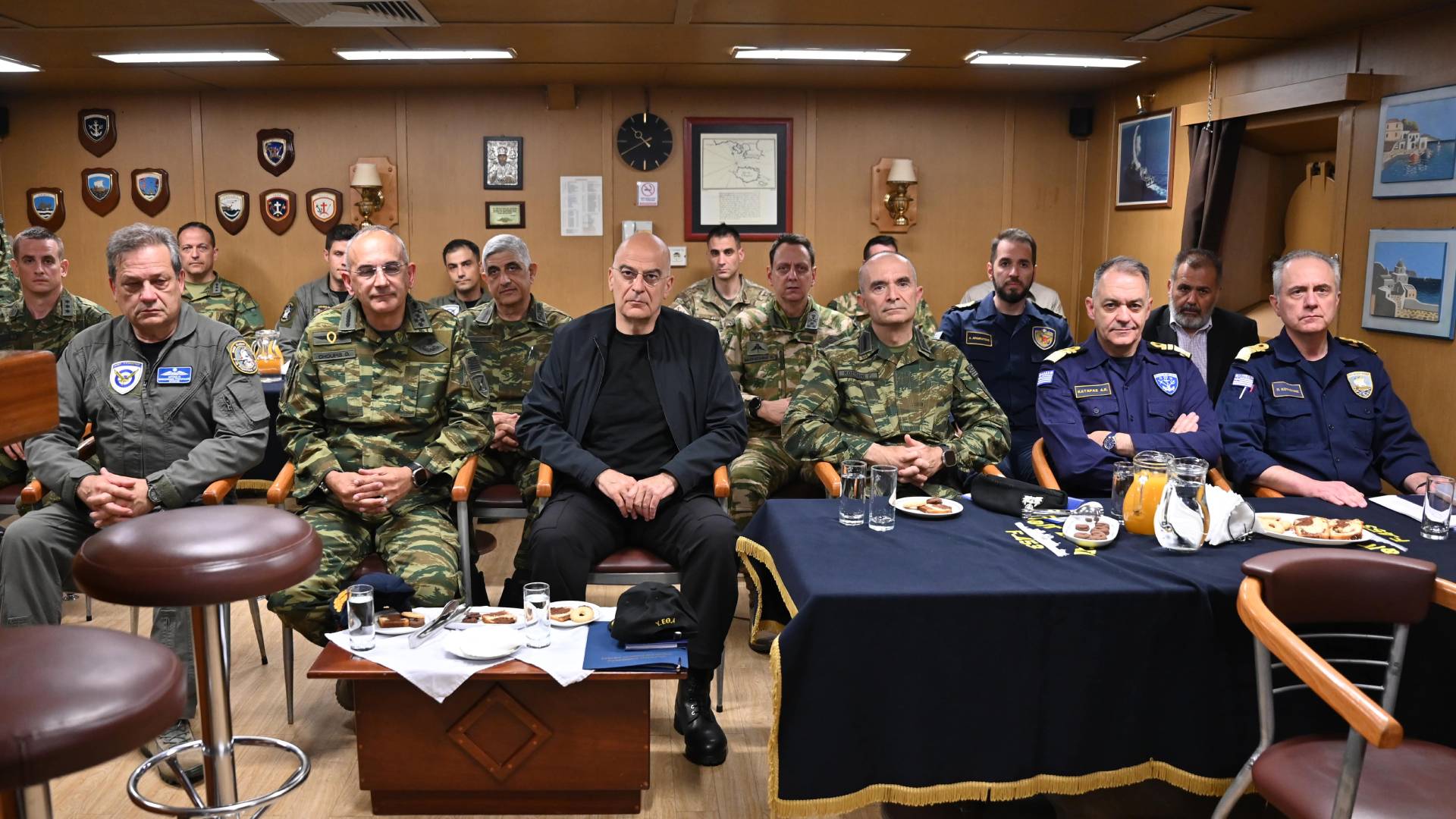 Την άσκηση «ΚΑΤΑΙΓΙΣ 24» –που διεξάγεται στην ευρύτερη περιοχή του Ανατολικού και του Νοτίου Αιγαίου– παρακολούθησε χθες το βράδυ ο υπουργός Εθνικής Αμυνας, Νίκος Δένδιας, επιβαίνων της φρεγάτας «ΣΠΕΤΣΑΙ», στην οποία μετέβη συνοδευόμενος από τον αρχηγό ΓΕΕΘΑ στρατηγό, Δημήτριο Χούπη.