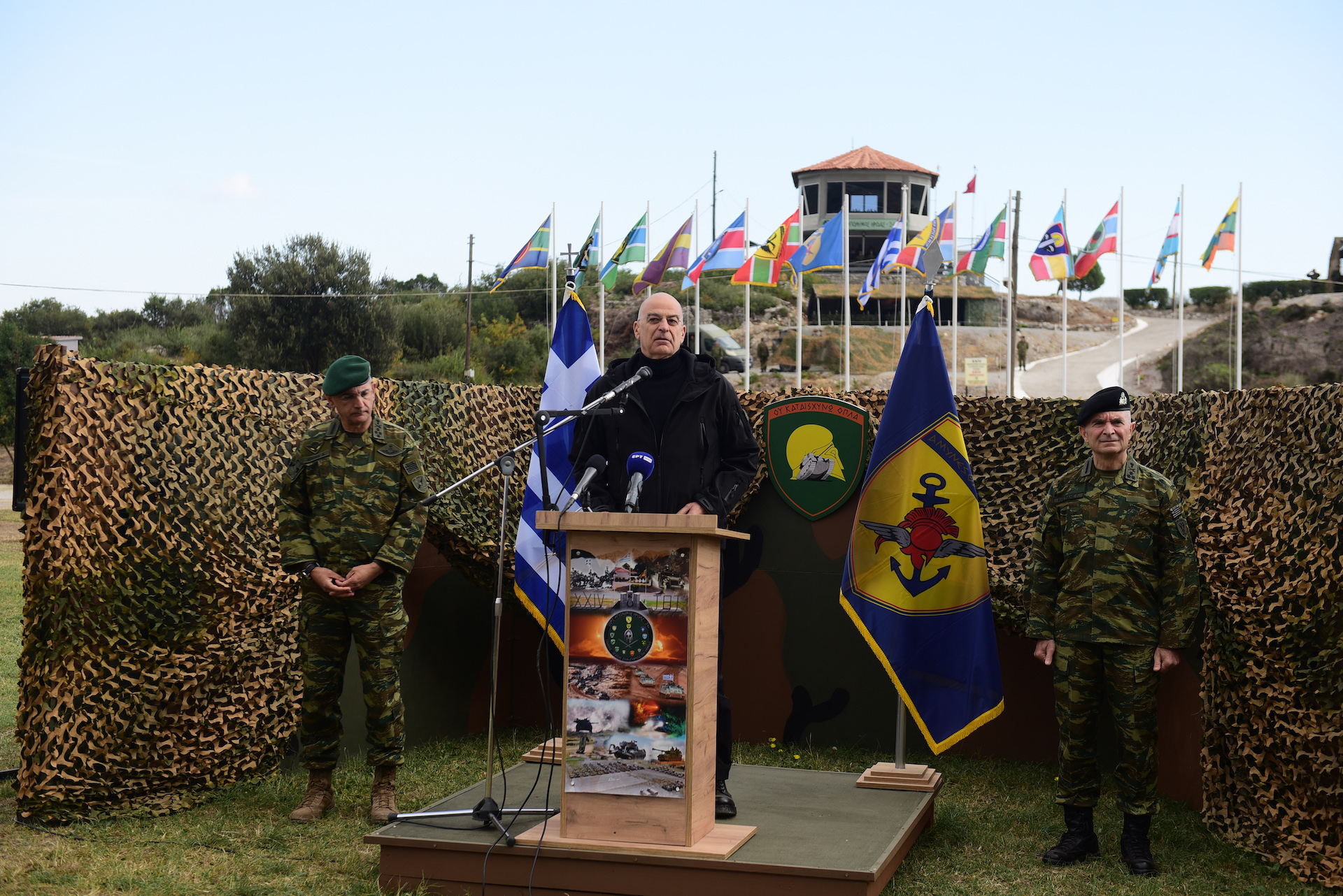 Τον υπουργό συνόδευσαν ο υφυπουργός Εθνικής Αμυνας Γιάννης Κεφαλογιάννης, ο αρχηγός ΓΕΕΘΑ, στρατηγός Δημήτριος Χούπης και ο αρχηγός ΓΕΣ, αντιστράτηγος Γεώργιος Κωστίδης.