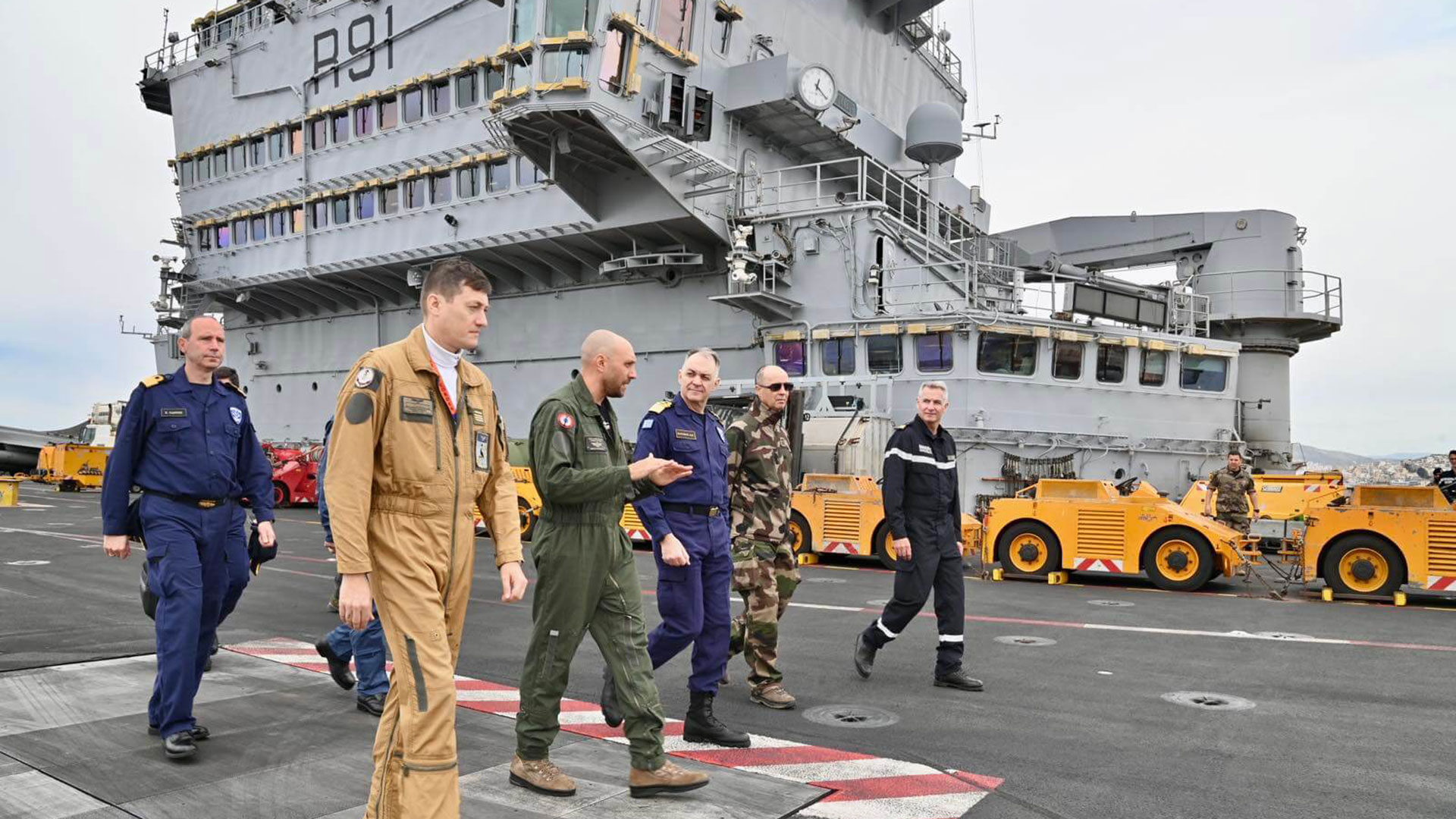 Οπως ανακοινώθηκε, τον αρχηγό ΓΕΝ υποδέχθηκε ο Γάλλος διοικητής της Ναυτικής Δύναμης Task Force 473 υποναύαρχος Jacques Mallard και ο κυβερνήτης του αεροπλανοφόρου πλοίαρχος Georges-Antoine Florentin.