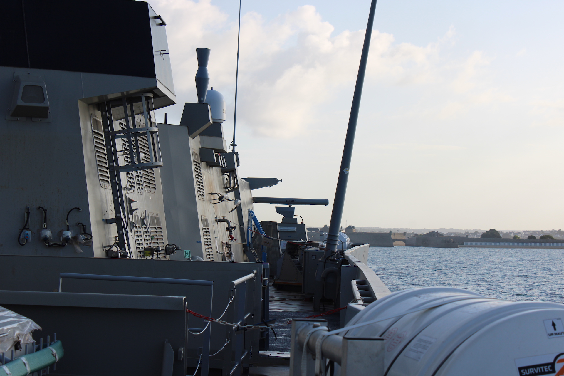 Λίγο μετά τις 9:30, το προσωπικό έλυσε τους κάβους και τα ρυμουλκά οδήγησαν την ελληνική FDI στην έξοδο του φυσικού λιμανιού, εκεί όπου ο ποταμός Σκορφ χύνεται στη θάλασσα της Βρετάνης.