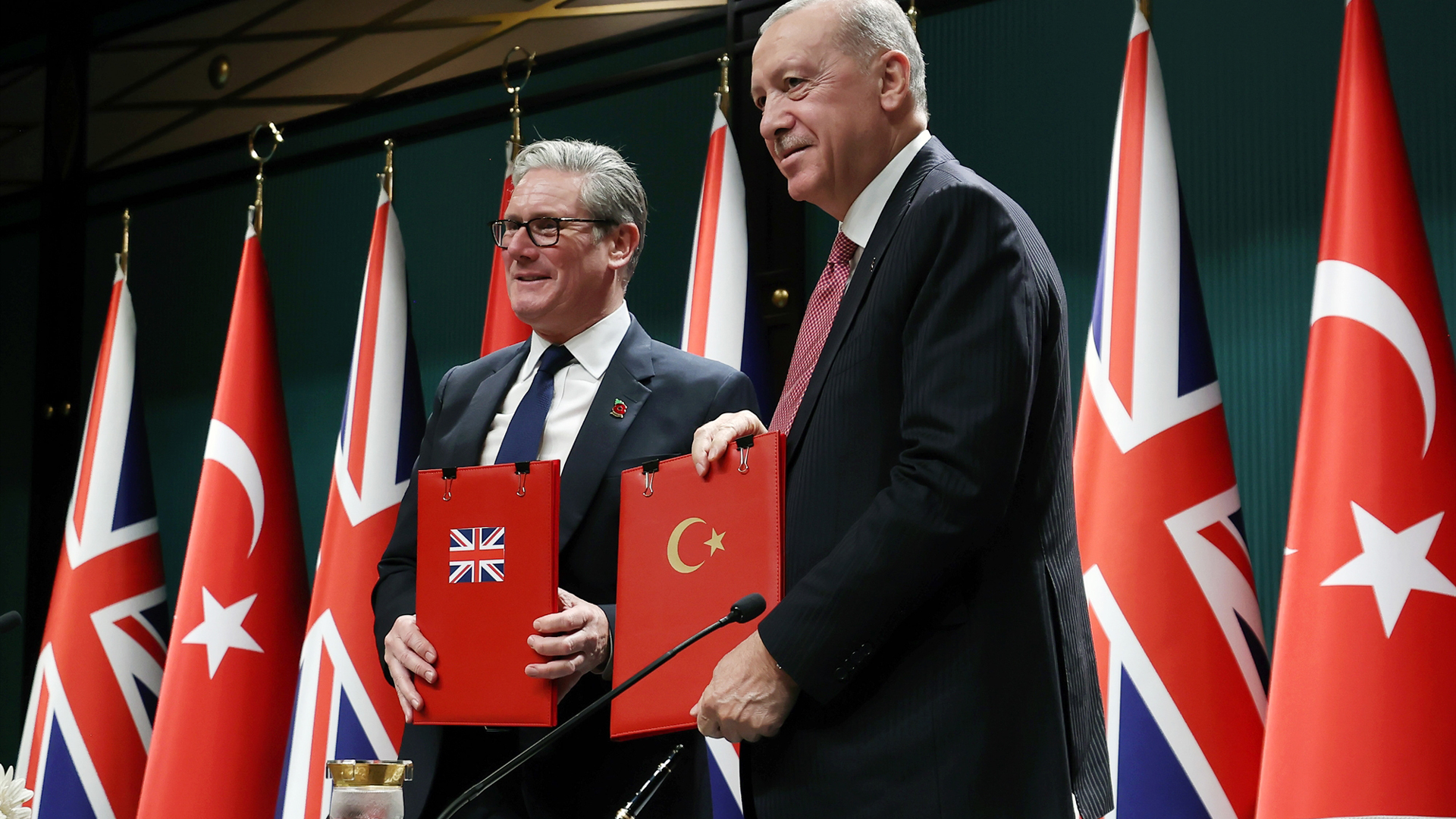 Η συμφωνία αγοράς 20 Eurofighter ύψους 8 δισ. βρετανικών λιρών (περίπου 9,2 δισ. ευρώ) ανακοινώθηκε από τον κ. Ερντογάν και τον πρωθυπουργό του Ηνωμένου Βασιλείου Κιρ Στάρμερ, το αεροσκάφος του οποίου πέταξε από το Λονδίνο προς την Αγκυρα συνοδευόμενο από δύο αεροσκάφη αυτού του τύπου της Βασιλικής Αεροπορίας, αλλά αύριο το πρωί στην Τουρκία θα βρεθεί και ο καγκελάριος της Γερμανίας, Φρίντριχ Μερτς.