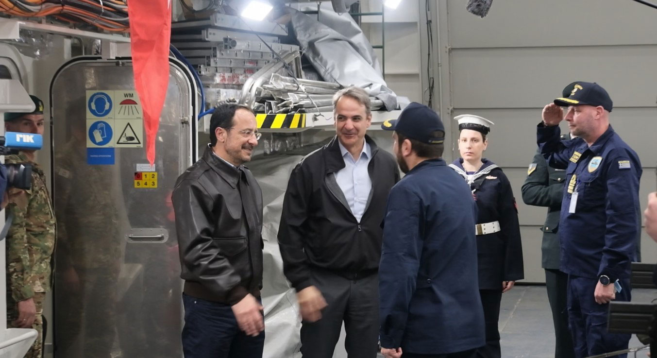 Ο Κυριάκος Μητσοτάκης και ο πρόεδρος της Κυπριακής Δημοκρατίας Νίκος Χριστοδουλίδης επισκέφτηκαν τη φρεγάτα «Κίμων» του Πολεμικού Ναυτικού, που μαζί με τη φρεγάτα «Ψαρά» και τέσσερα μαχητικά F-16 Viper έχουν σταλεί στην Κύπρο στο πλαίσιο της αμυντικής συνδρομής που της παρέχει η Ελλάδα.