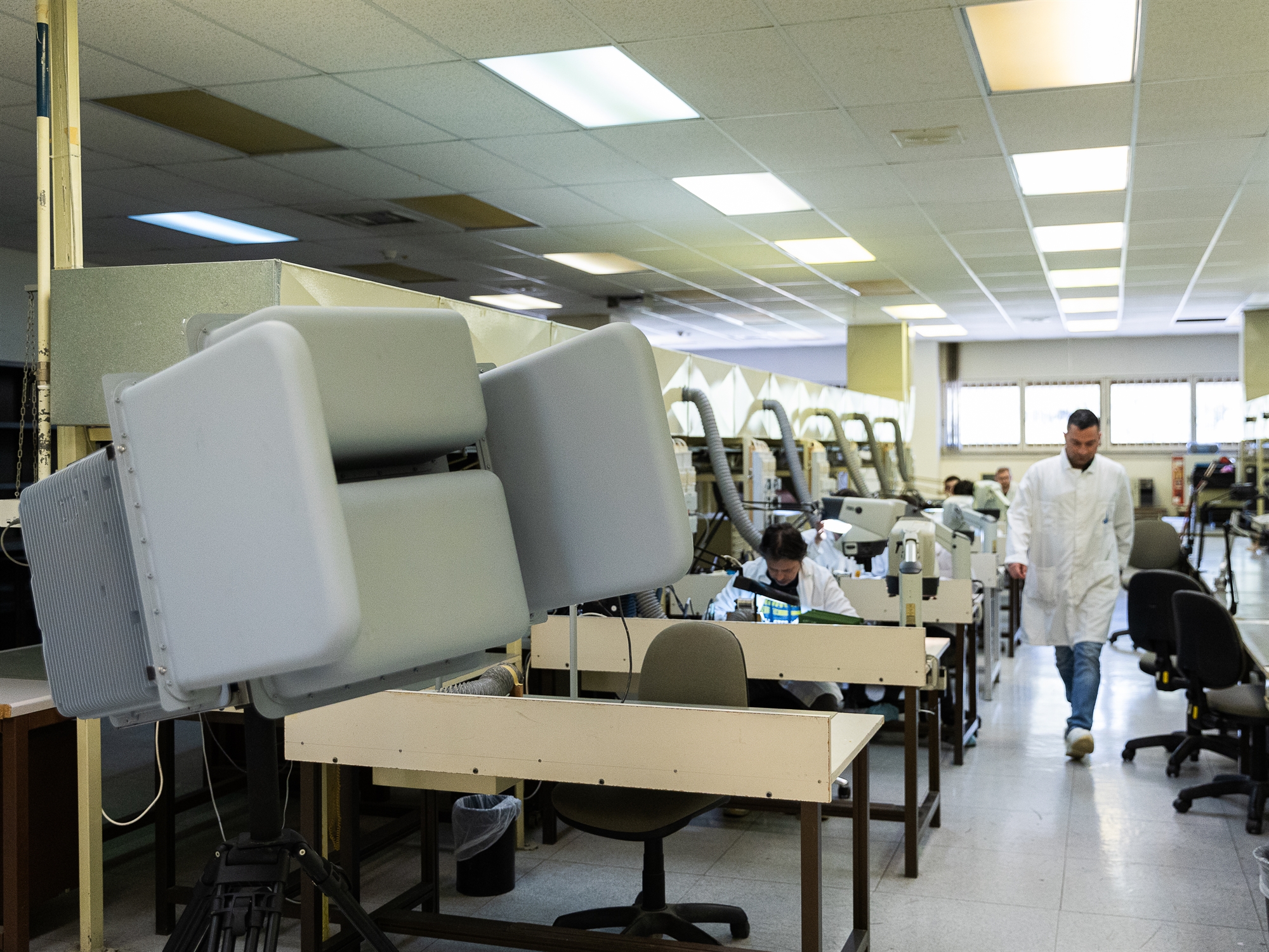 Κάθε στάδιο παραγωγής απαιτεί προσοχή στη λεπτομέρεια και εμπειρία και από τη διαδικασία δεν περισσεύει κανείς. «Δεν μπορείς να αφαιρεθείς. Εδώ το λάθος είναι σοβαρό. Χρειάζεται προσοχή, όρεξη για δουλειά και συνέπεια», δηλώνει ο Θεόδωρος Χασιώτης. Παρότι είναι προϊστάμενος του τμήματος, ο 57χρονος δεν απέχει από κανένα στάδιο της διαδικασίας. Τον συναντήσαμε να κόβει και να διαμορφώνει καλώδια. Κάποιος άλλος, με 34 χρόνια εμπειρίας στο αντικείμενο, ήλεγχε χιλιοστό-χιλιοστό αν έχουν γίνει σωστά οι συγκολλήσεις και συναρμολογήσεις στις ηλεκτρονικές πλακέτες. Οταν τον ρωτώ πώς αισθάνεται που πολύς κόσμος δεν γνωρίζει καν την ΕΑΒ, μου αποκαλύπτει ότι ο κουνιάδος του τον ρωτάει κάθε χρόνο «γιατί δεν σας έχουν κλείσει ακόμη;». «Δεν ξέρουν τι γίνεται εδώ. Δουλεύουμε σε στρατιωτικές προδιαγραφές, δηλαδή κατηγορία 3. Κατηγορία 3 είναι τέλειο. Δεν έχει fail εδώ. Και το πάτωμα που είστε τώρα είναι αντιστατικό».