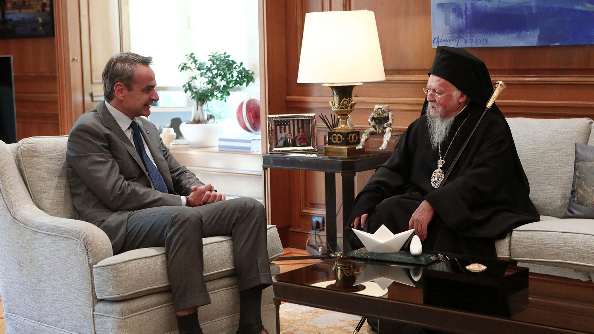 Παράλληλα, ο κ. Μητσοτάκης δεν παρέλειψε να ευχαριστήσει τον κ.κ. Βαρθολομαίο για την αλληλεγγύη που εξέφρασε στους πληγέντες των πρόσφατων φυσικών καταστροφών στην Ελλάδα.