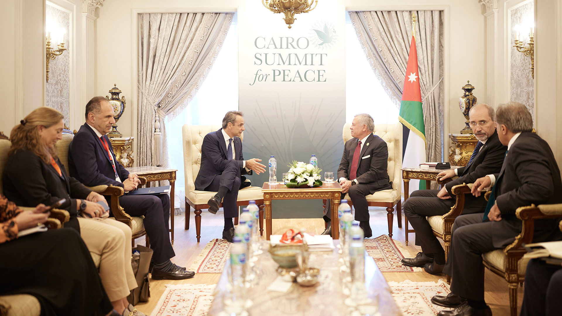 Συνάντηση με το βασιλιά της Ιορδανίας, Αμπντάλα ΙΙ, πραγματοποίησε ο πρωθυπουργός, Κυριάκος Μητσοτάκης, στο περιθώριο της Συνόδου Κορυφής για την Ειρήνη στο Κάιρο.