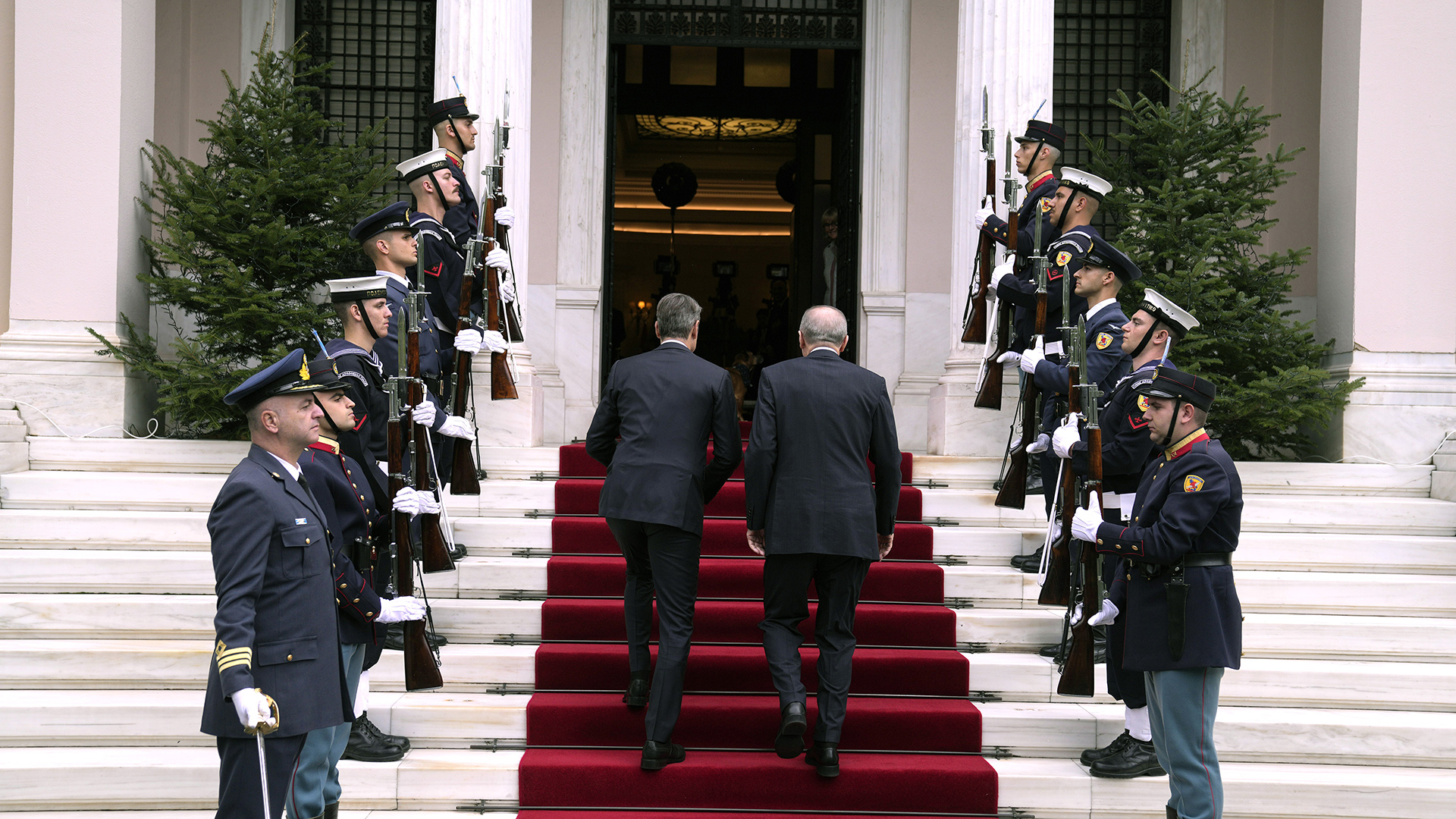 Η υποδοχή του Τούρκου Προέδρου από τον Κυριάκο Μητσοτάκη στο Μέγαρο Μαξίμου