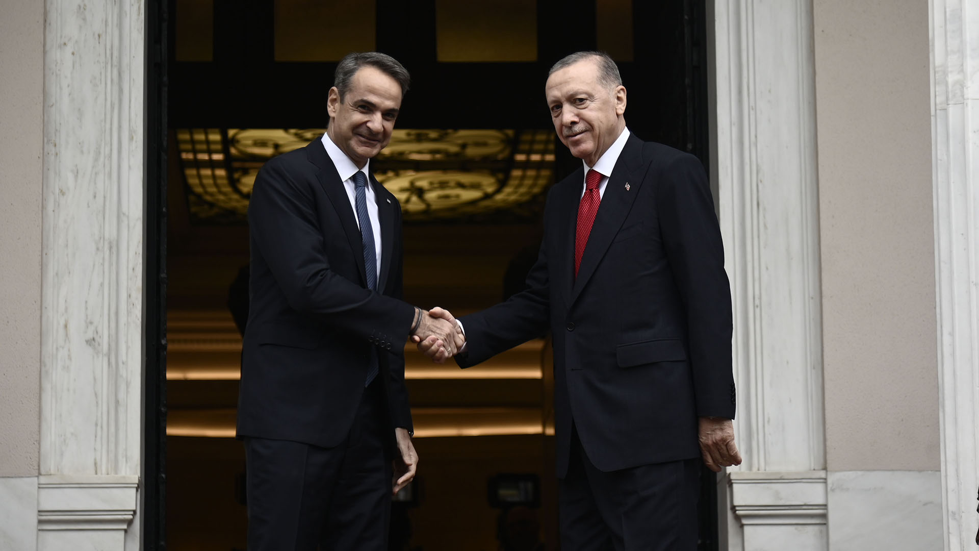 Η χειραψία Μητσοτάκη-Ερντογάν στην είσοδο του Μεγάρου Μαξίμου
