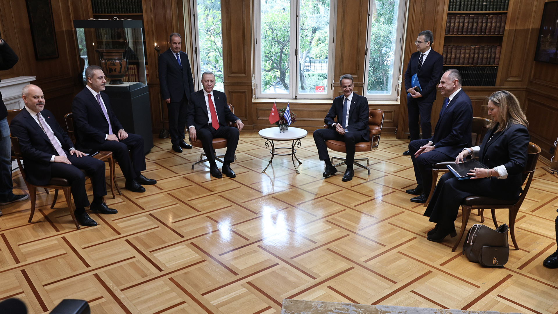 Στιγμιότυπα από τη συνάντηση Μητσοτάκη και Ερντογάν στο Μαξίμου