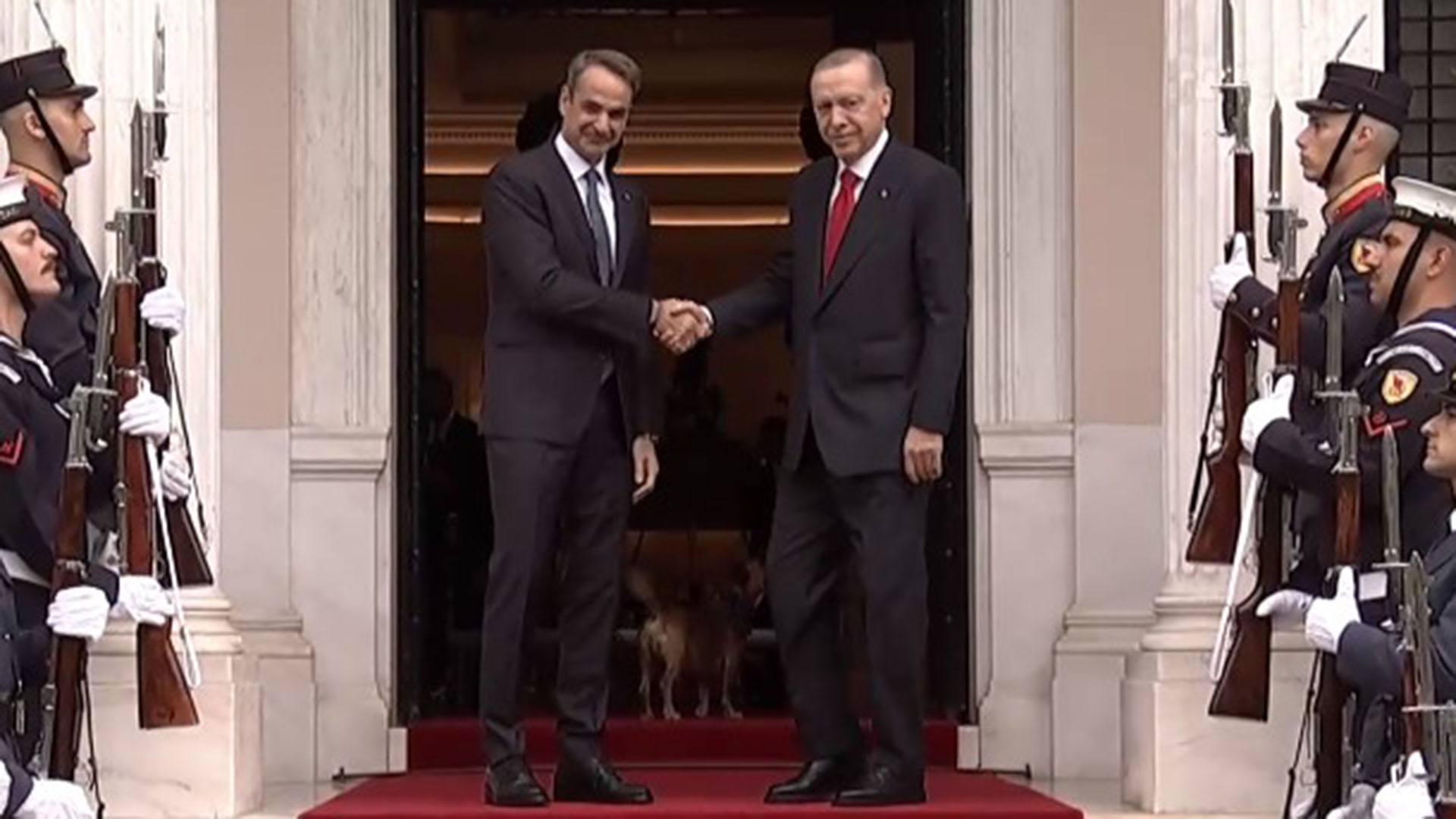 - 12:09Η χειραψία Μητσοτάκη-Ερντογάν στην είσοδο του Μεγάρου Μαξίμου