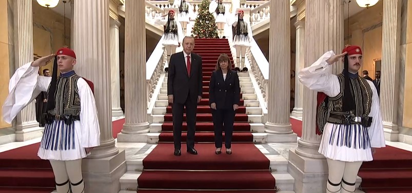 Λίγο νωρίτερα, ο Τούρκος ηγέτης έγινε δεκτός από την ΠτΔ. Για «την αρχή μιας νέας εποχής στις σχέσεις Τουρκίας και Ελλάδας», μίλησε ο κ. Ερντογάν.