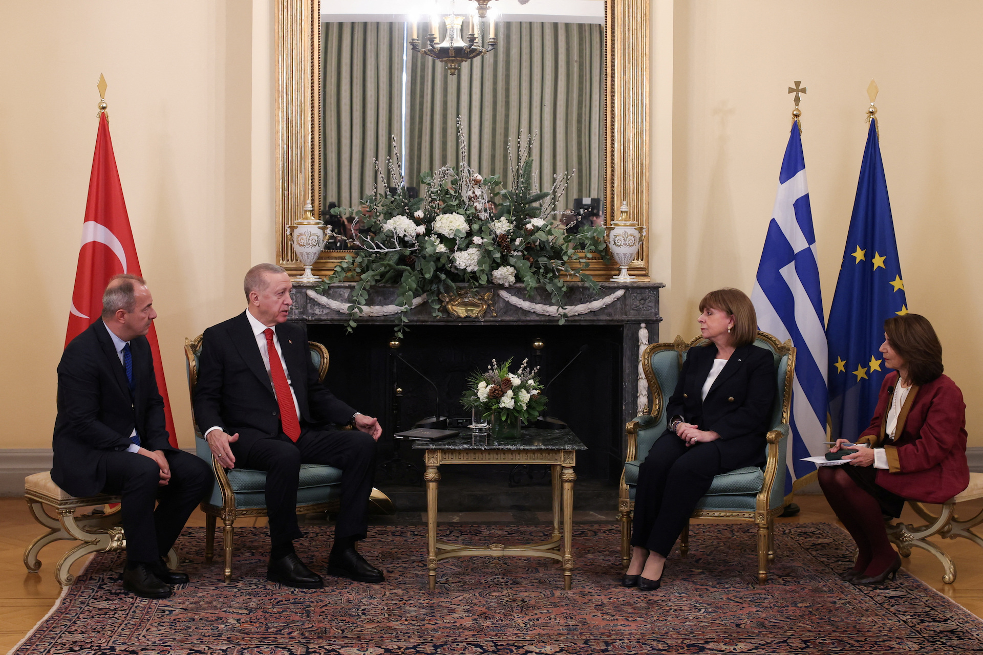 Δεκτός από την Πρόεδρο της Ελληνικής Δημοκρατίας, Κατερίνα Σακελλαροπούλου, έγινε ο Τούρκος ηγέτης Ρετζέπ Ταγίπ Ερντογάν, ο οποίος πραγματοποιεί σήμερα επίσκεψη-εξπρές στην Αθήνα με στόχο τη διατήρηση αλλά και την αναβάθμιση του θετικού κλίματος που επικρατεί στα ελληνοτουρκικά το τελευταίο διάστημα.