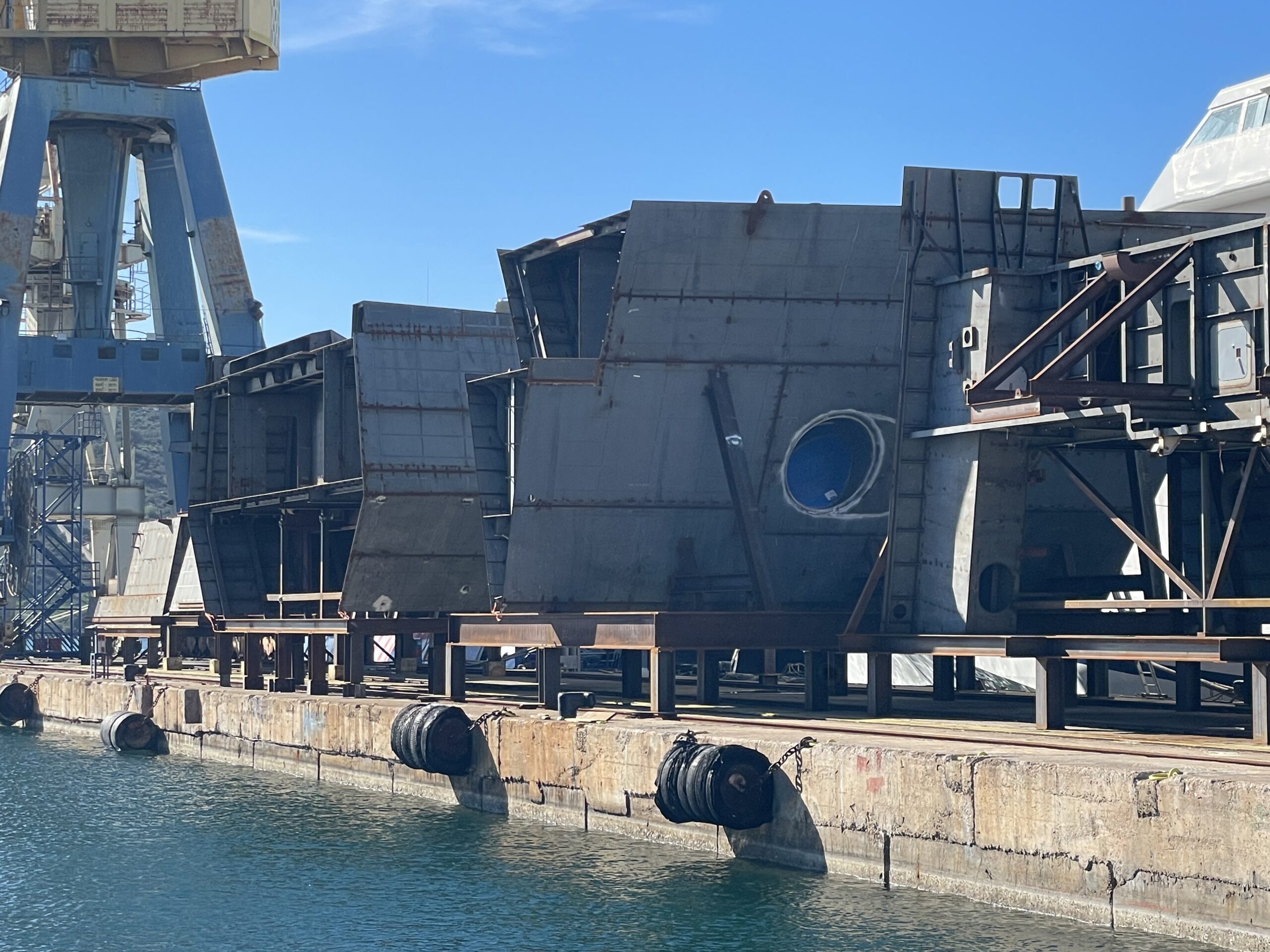 Πρόκειται για τμήματα της γάστρας του πλοίου και συγκεκριμένα, δύο τμήματα της πλώρης και τρία της πρύμνης. Τα μπλοκ της πλώρης χρειάστηκαν επιπλέον ενισχύσεις στη συγκόλληση των ελασμάτων καθώς εκεί θα εγκατασταθεί το πυροβόλο Super Rapido των 72 χιλιοστών, με πληροφορίες της «Κ» να αναφέρουν πως τα βλήματα που θα χρησιμοποιεί θα είναι τύπου Vulcano. Εξίσου σημαντικά είναι και τα τρία μπλοκ της πρύμνης που συνιστούν το επίστεγο του οργανικού ελικοπτέρου της φρεγάτας. Σύμφωνα με τον έως τώρα σχεδιασμό, στο άνω μέρος του τμήματος προγραμματίζεται να εγκατασταθεί το σύστημα εγγύς προστασίας RAM με 21 πυραύλους που αποτελεί την τελευταία γραμμή άμυνας του πλοίου έναντι κύριων απειλών όπως πύραυλοι και μη επανδρωμένα αεροσκάφη.