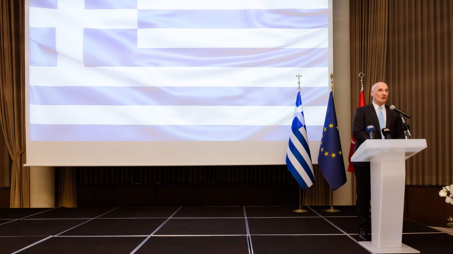 Στην ομιλία του, ο Ελληνας πρέσβης δήλωσε ότι «οι διμερείς μας σχέσεις έχουν γνωρίσει διακυμάνσεις», προσθέτοντας ότι «κατά καιρούς απειλήθηκαν μάλιστα με επικίνδυνο τρόπο και μαζί τους η ασφάλεια και η ειρήνη στην Ανατολική Μεσόγειο, ωστόσο γι’ αυτό είναι εξαιρετικά σημαντικό που οι δύο χώρες αποφάσισαν να ακολουθήσουν μια νέα πορεία».
