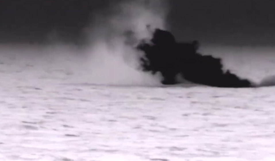 Διακρίνεται η χαμηλή πλεύση του μη επανδρωμένου αεροχήματος λίγα μόλις μέτρα από την επιφάνεια της θάλασσας (Sea Skimming) γεγονός που το καθιστά ιδιαίτερα δύσκολο και επικίνδυνο στόχο. Το drone φαίνεται να κάνει έναν ελιγμό, κερδίζοντας ύψος και στη συνέχεια βυθίζεται απότομα, καταλήγοντας στη θάλασσα όπου εκρήγνυται.