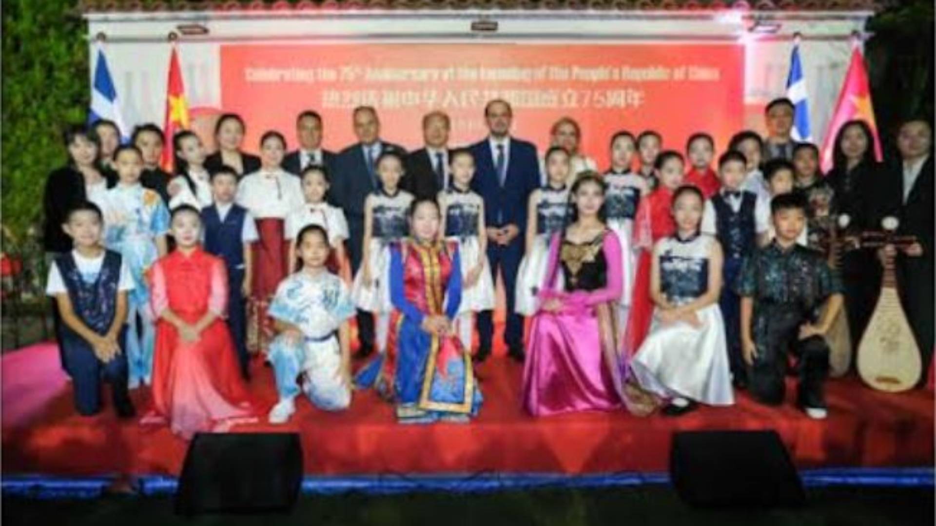 Στις 23 Σεπτεμβρίου η Πρεσβεία της Κίνας στην Ελλάδα διοργάνωσε δεξίωση για τον εορτασμό της 75ης επετείου από την ίδρυση της Λαϊκής Δημοκρατίας της Κίνας. Το παρών στη δεξίωση έδωσαν προσκεκλημένοι από την ελληνική κυβέρνηση, το κοινοβούλιο, τις ένοπλες δυνάμεις, τους κλάδους της οικονομίας και του εμπορίου, της εκπαίδευσης, της επιστήμης και τεχνολογίας, του πολιτισμού και των ΜΜΕ, καθώς και πρέσβεις διαφόρων χωρών στην Ελλάδα και μέλη της κινέζικης διασποράς στην Ελλάδα.