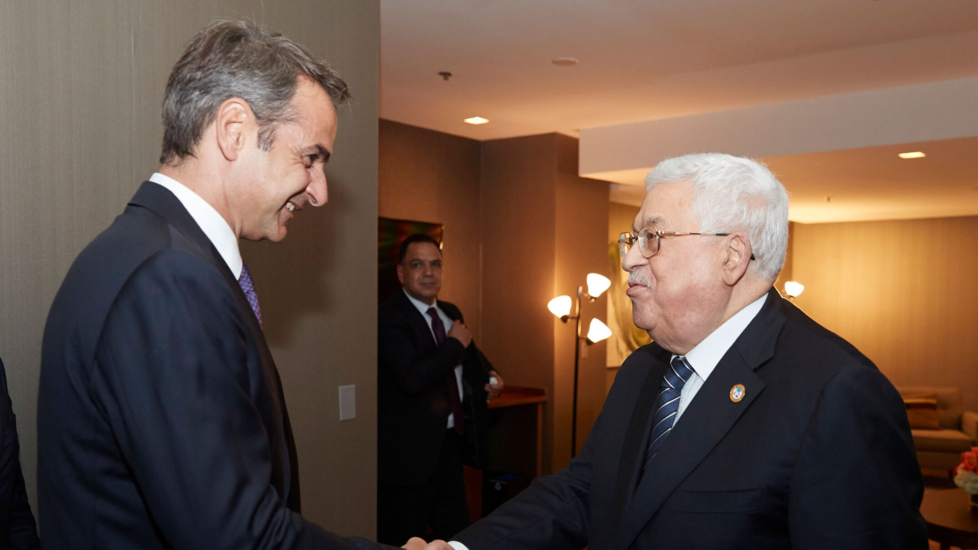 Ο πρωθυπουργός Κυριάκος Μητσοτάκης συναντήθηκε στο περιθώριο της 79ης Συνόδου της Γενικής Συνέλευσης του ΟΗΕ με τον πρόεδρο της Παλαιστινιακής Αρχής Μαχμούντ Αμπάς.